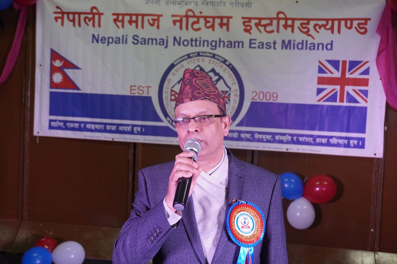 समाजका उपाध्यक्ष मुकुन्द खरेलको स्वागत मन्तब्य रहेको कार्यक्रमको सञ्चालन महासचिव लोकनाथ अधिकारीले गरेका थिए । संस्थापक अध्यक्ष रण बहादुर केसी नेपाली महिला समुह नटिङघमकी अध्यक्ष श्रीमती कल्पना गुरुङ, पुर्ब अध्यक्ष प्रवीण पाण्डे, गविन्द शर्मा खरेल, बिष्णु चालीसे,पुर्ब महासचिव डिलाराम गौतम,पुर्ब उपाध्यक्ष कृष्ण खरेल लगायतले सुभकामना दिएका थिए ।