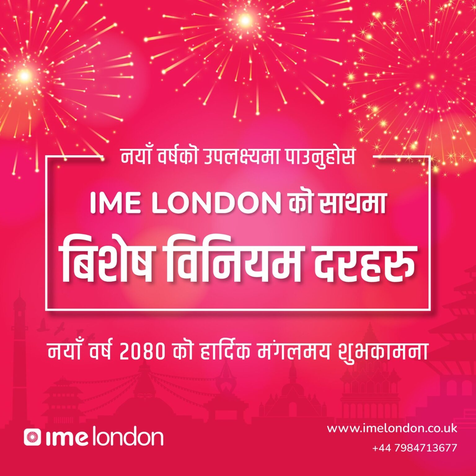 लन्डन । आइएमई लन्डनले नयां वर्ष २०८० को अवसर पारेर ग्राहकका लागि विशेष योजना ल्याएको छ । मनी ट्रान्सफरमा भरपर्दो मानिएको कम्पनी आइएमई लन्डनले ल्याएको योजनामा ग्राहकहरुले पैसा पठाउंदा उत्कृष्ट एक्सचेन्ज रेट प्राप्त गर्नेछन् । कम्पनीले नयां वर्ष योजना अहिले यस व्यवसायमा अन्य कम्पनीले प्रदान गरेको मध्ये उत्कृष्ट भएको दावी समेत गरेको छ ।