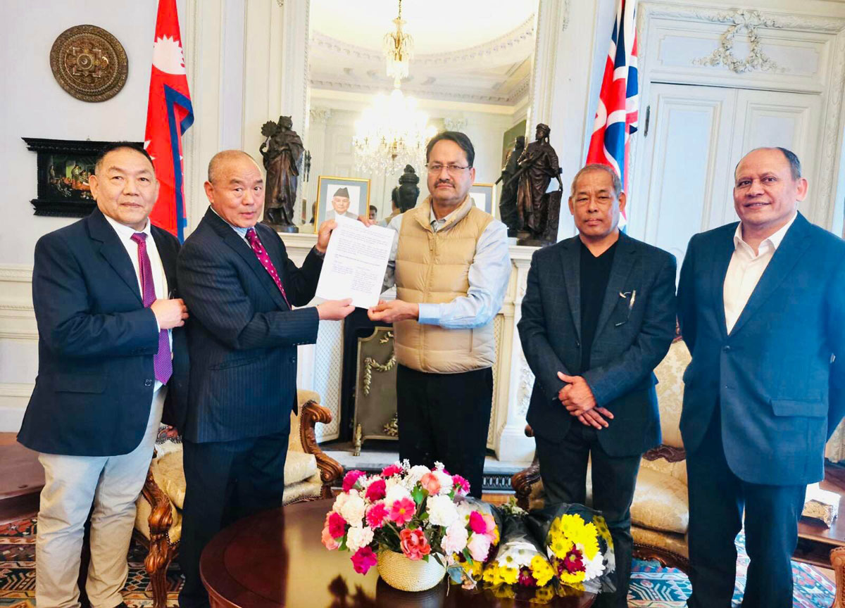 बेलायतको राजा चार्ल्स तृतीयको शुभराज्याभिषेक समारोहमा अतिथिको रुपमा बेलायत भ्रमणमा रहेका नेपालका परराष्ट्रमन्त्री एनपी साउदसँग नेपाली नागरिकता निरन्तरता अभियानका अभियन्ताहरुले लण्डनमा दुताबासमा एक कार्यक्रमका बीच आफ्ना समस्या राक्दै पत्र बुझाएका हुन् ।