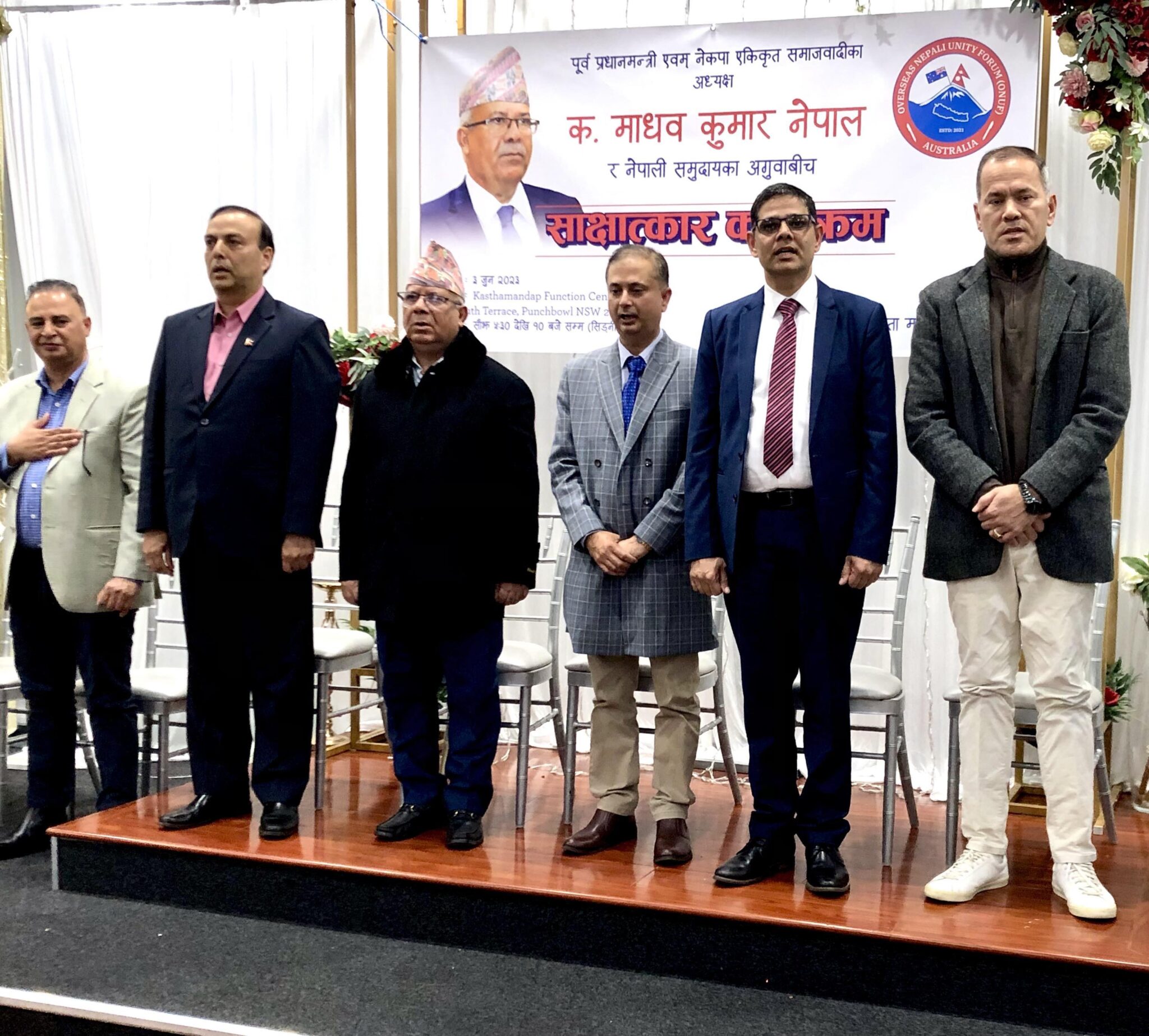 सिड्नी । नेकपा एकीकृत समाजवादी पार्टीको प्रवास स्थित भातृ संगठन प्रवासी नेपाली एकता मञ्च अस्ट्रेलियाले पूर्वप्रधानमन्त्री तथा पार्टी अध्यक्ष माधव कुमार नेपालसगं साक्षात्कार तथा अन्तरक्रिया कार्यक्रम सम्पन्न गरेको छ । समसामयिक राजनैतिक अवस्था र देशको पछिल्लो घटनाक्रमका विषयमा जानकारी दिने उद्धेश्यले सिड्नीमा आयोजित कार्यक्रमलाई प्रमुख अतिथिको रुपमा सम्बोधन गर्दै नेता नेपालले पछिल्लो गठबन्धनको सरकारले जनअपेक्षा अनुसार काम गरेको बताए ।