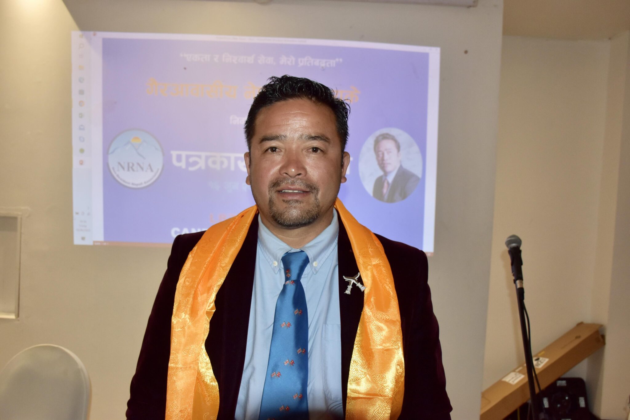 उनले आफु संस्थाको नेतृत्वमा पुगे पछि नेपालीहरूको साझा संस्थाको रूपमा सबैलाई एकताबद्ध गर्ने प्रतिबद्धता जनाए ।