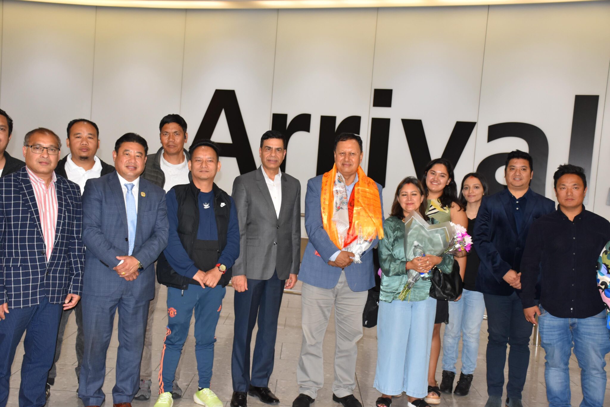 नीजि भ्रमणका शिलशिलामा शुक्रबार राती लन्डन आइपुगेका उनलाई बेलायतका लागि नेपाली राजदूत ज्ञानचन्द्र आचार्य, नेपाली जनसम्पर्क समिति यूके सभापति युवराज गुरुङलगायतले स्वागत गरे ।