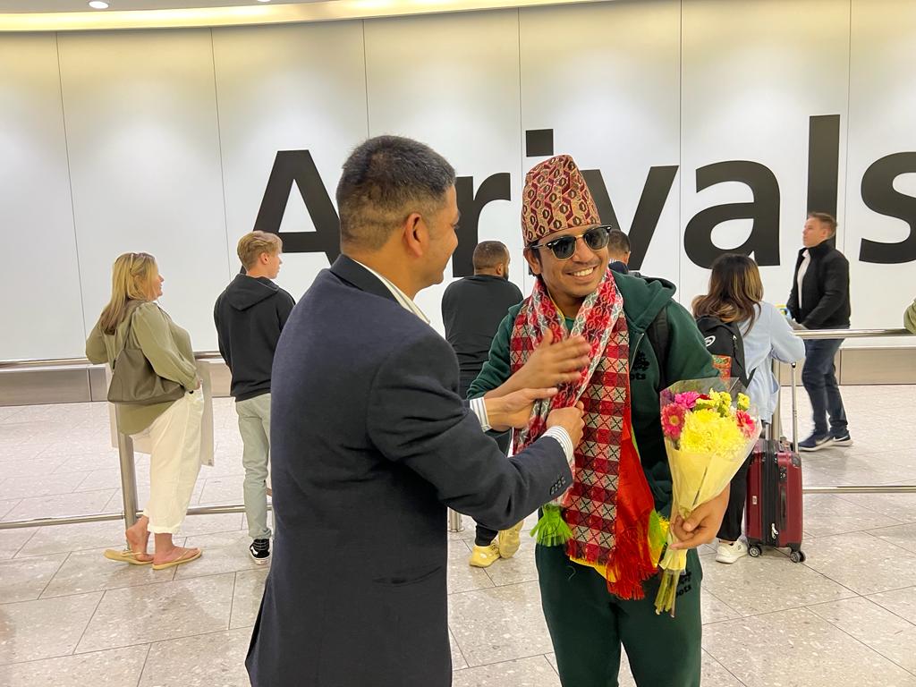 गैरआवासीय नेपाली संघका वरिष्ठ अभियन्ता शेर सुनार,क्याप्लर इभेन्ट्सका तारा गर्बुजा, अनिल मल्ल, मनोज गुरुङ र मनसुदन थापा,पत्रकार नरेद्र बस्नेत,प्रकास कंडेलले हिथ्रो विमानस्थल पुगेर उनलाई स्वागत गरेका थिए।