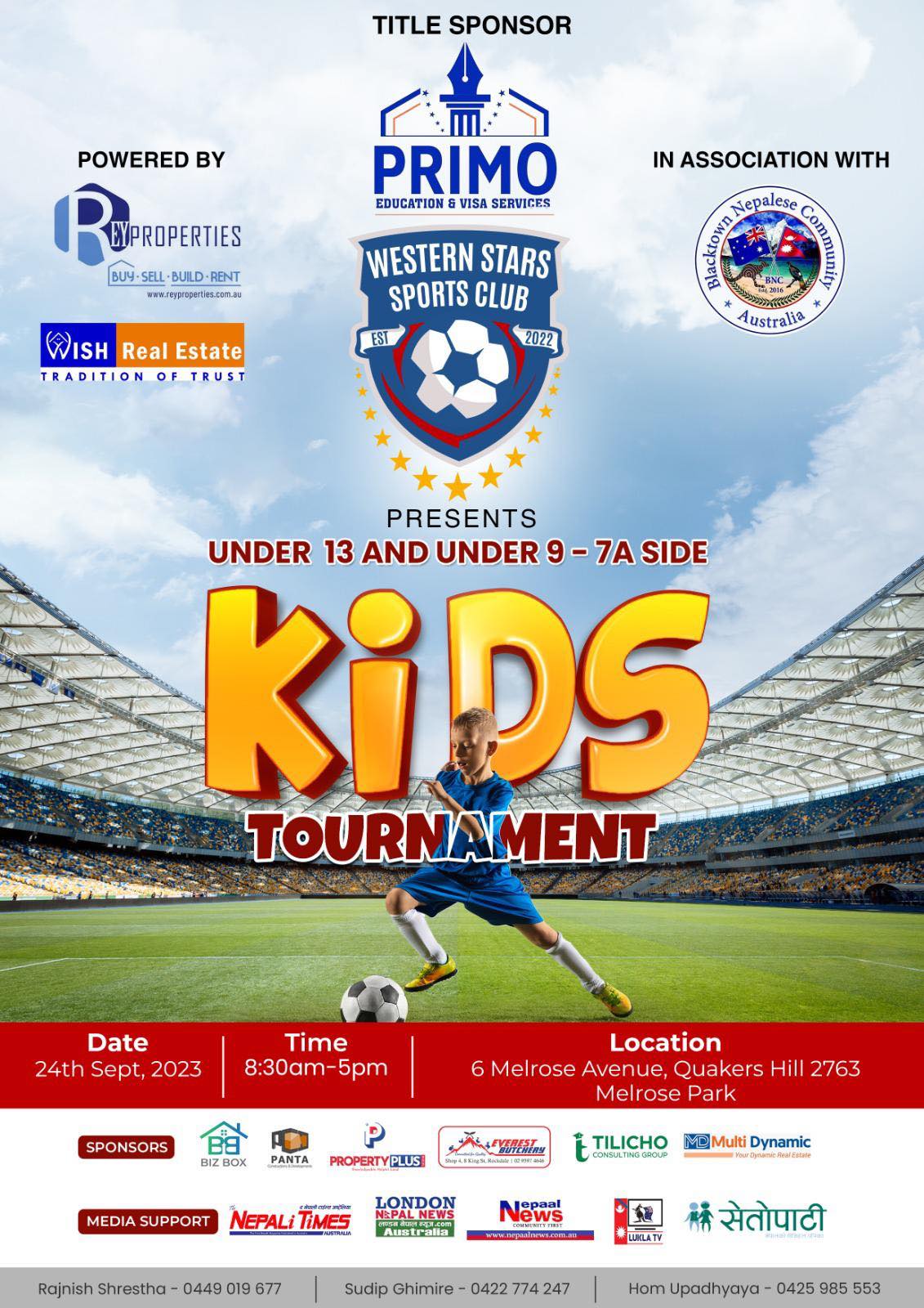 सिड्नी ।वेष्टर्न स्टार स्पोर्टस क्लबले १३ वर्ष मुनिका बालबालिकाहरुको फुटबल प्रतियोगिता आयोजना गरेको छ। ५ वर्ष देखी ९ र ९ देखी १३ वर्ष उमेर समुहका गरी २ समुहमा वालबलिकाहरुको सहभागीता रहेको प्रतियोगितामा १२ टोलीहरूले पहिलो चरणमा अंक प्रणाली जस्तै लीग खेल्ने छन भने दोस्रो राउन्डमा सेमिफाइनलबाट नकआउट हुनेछन ।