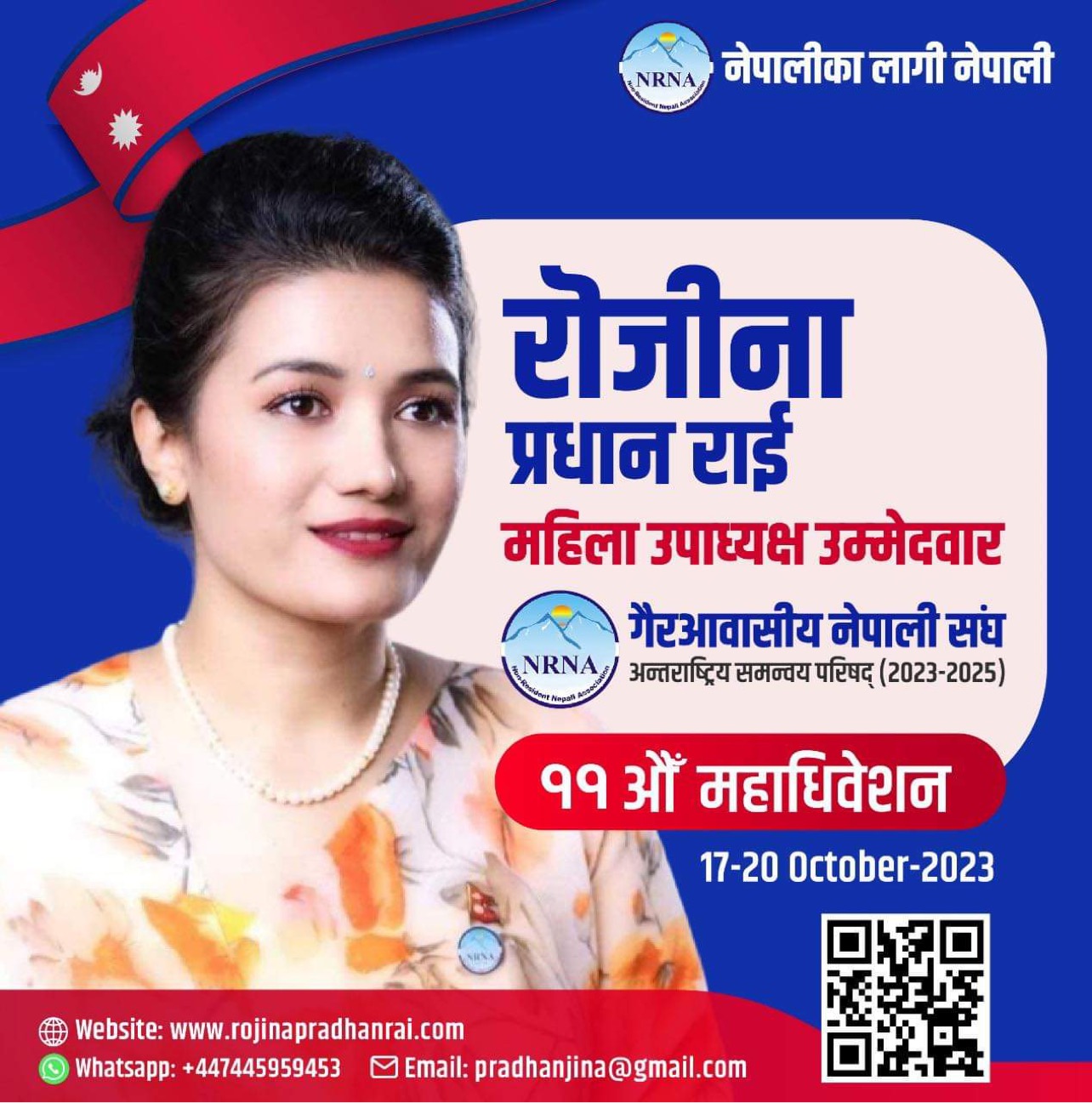 लन्डन । बेलायतकी महिला अभियन्ता तथा व्यवसायी रोजिना प्रधान राईले एनआरएनए उपाध्यक्ष (महिला) मा उम्मेदवारी दिने निर्णय गरेकी छन् ।