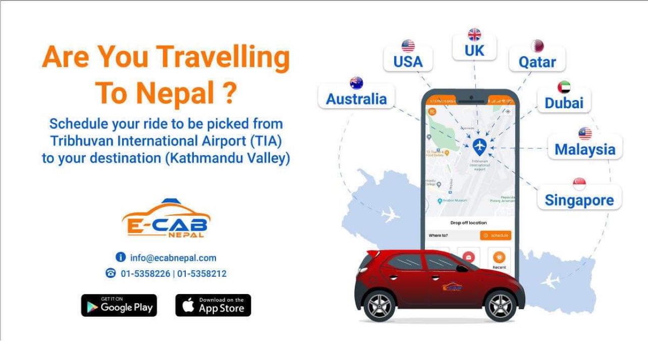 गुगल प्ले र एप्पल स्टोरमा गएर ECab Nepal को एप डाउनलोड गर्न सकिनेछ।