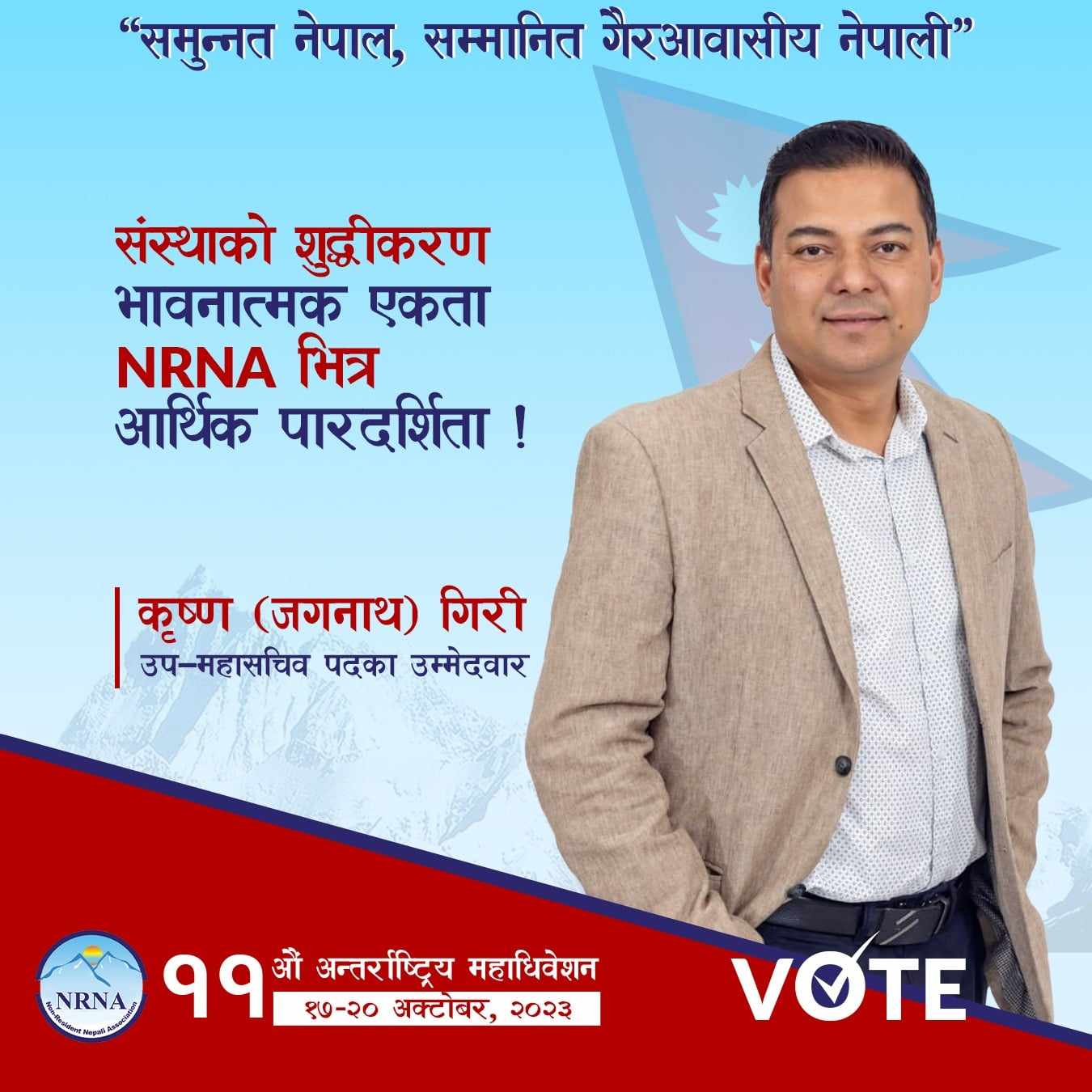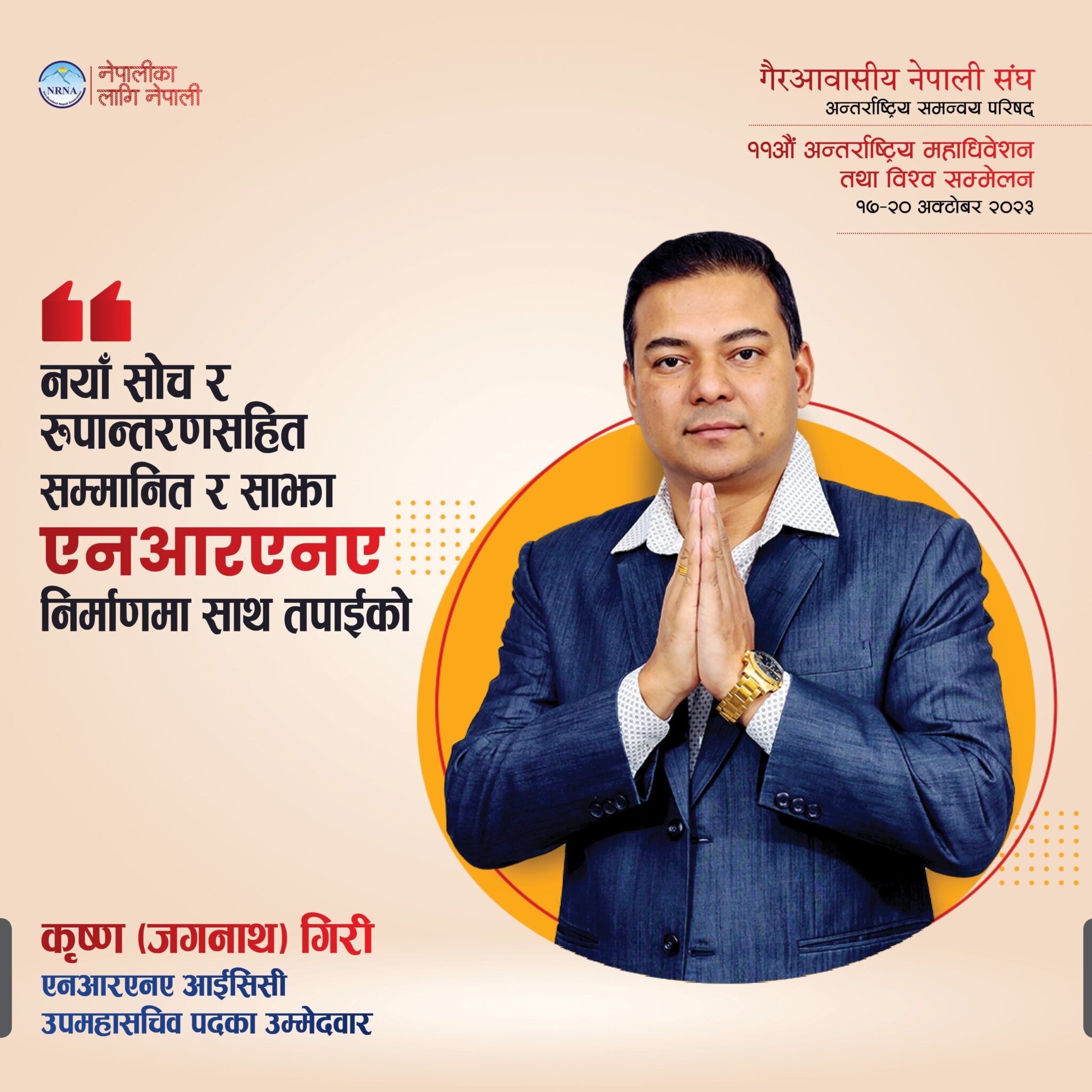 एनआरएनए उपमहासचिवमा कृष्ण (जगनाथ) गिरीको उम्मेदवारी