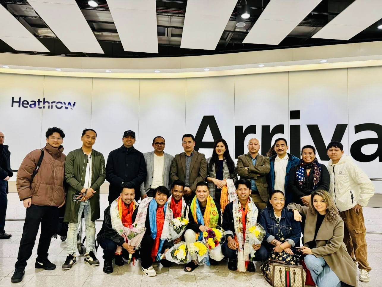 लन्डनस्थित हिथ्रो विमानस्थलमा सुनगाभा इन्टरटेनमेन्टका कार्यवाहक सीईओ मिन रोका मगर, प्रबन्ध निर्देशक गौरव लिम्बू, निर्देशक लोकनाथ अधिकारी लगायतले ‘भ्वाइस अफ नेपाल’को कलाकार टिमलाई स्वागत गरेका छन् ।