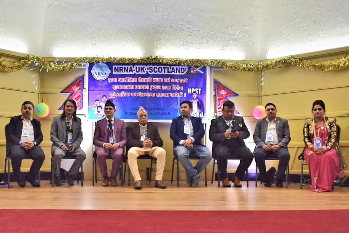 कार्यक्रममा एनआरएनए स्कटल्यान्डका अध्यक्ष दिवाकर पाण्डे अतिथीहरु लगायतले नयां वर्षको शुभकामना व्यक्त गरेका थिए ।