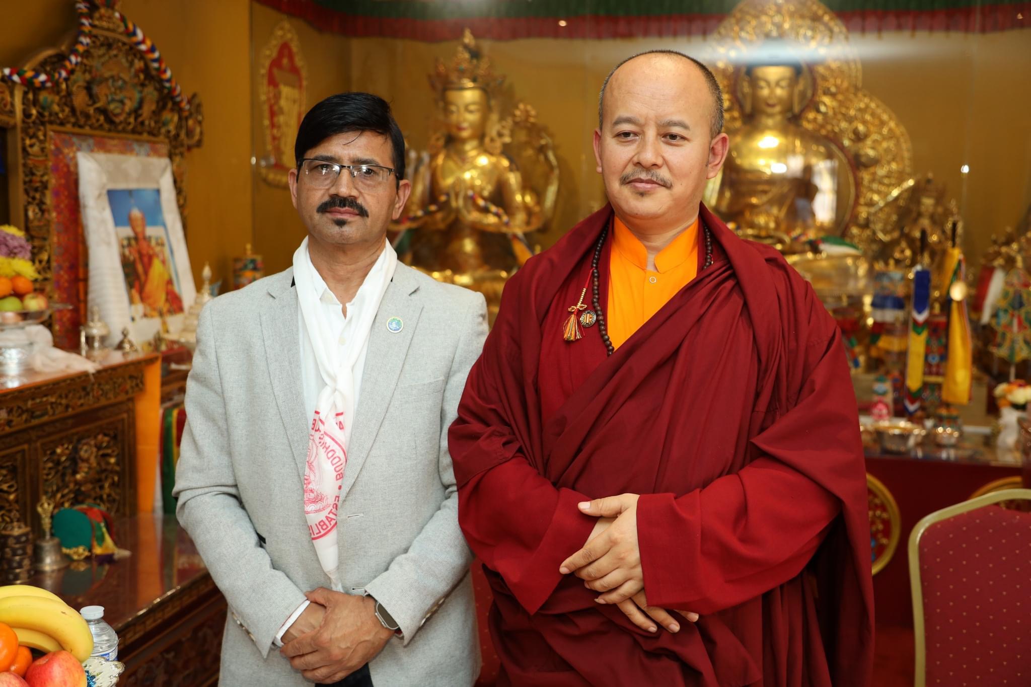 कार्यक्रममा पत्रकार महासंघ यूके नवनिर्वाचित अध्यक्ष विमला सेने, वरिष्ठ उपाध्यक्ष नरेन्द्र बस्नेत, कोषाध्यक्ष एसके गुरुङ, सहकोषाध्यक्ष सुरेन्द्र इग्नाम,कार्यसमिति सदस्यहरु मिलन तमु, बाचस्पति रेग्मी र नगेन्द्र नेम्वाङलाई गुम्बाका मूल गुरु खेन् रिन्पोछे शिर लामा (थुव्देन येशे) ले खादा तथा गुम्बाको ब्याचसहित बधाई तथा शुभकामना दिए ।