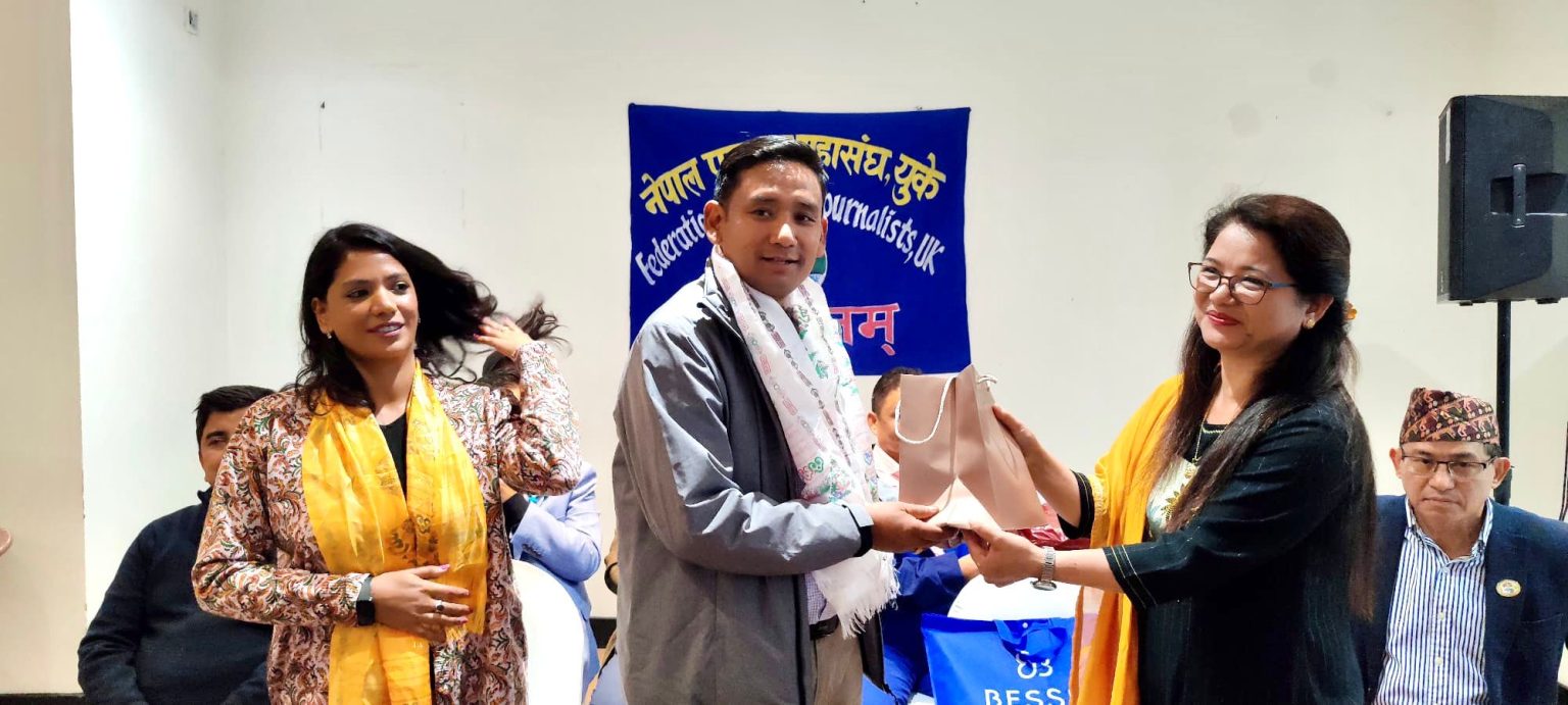 सामाजिक अभियन्ता गणेश इजम र एनआरएनए यूके पूर्व सचिव एवं वुद्धिजिवी डा. मीन रानाभाटले पत्रकारहरुलाई शुभकामना दिंदै निष्पक्ष लेखनमार्फत समाजलाई दिशानिर्देश गर्न सुझाव दिए ।