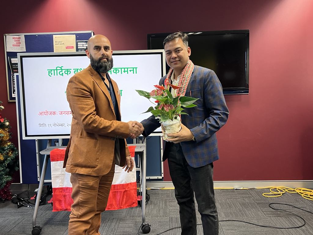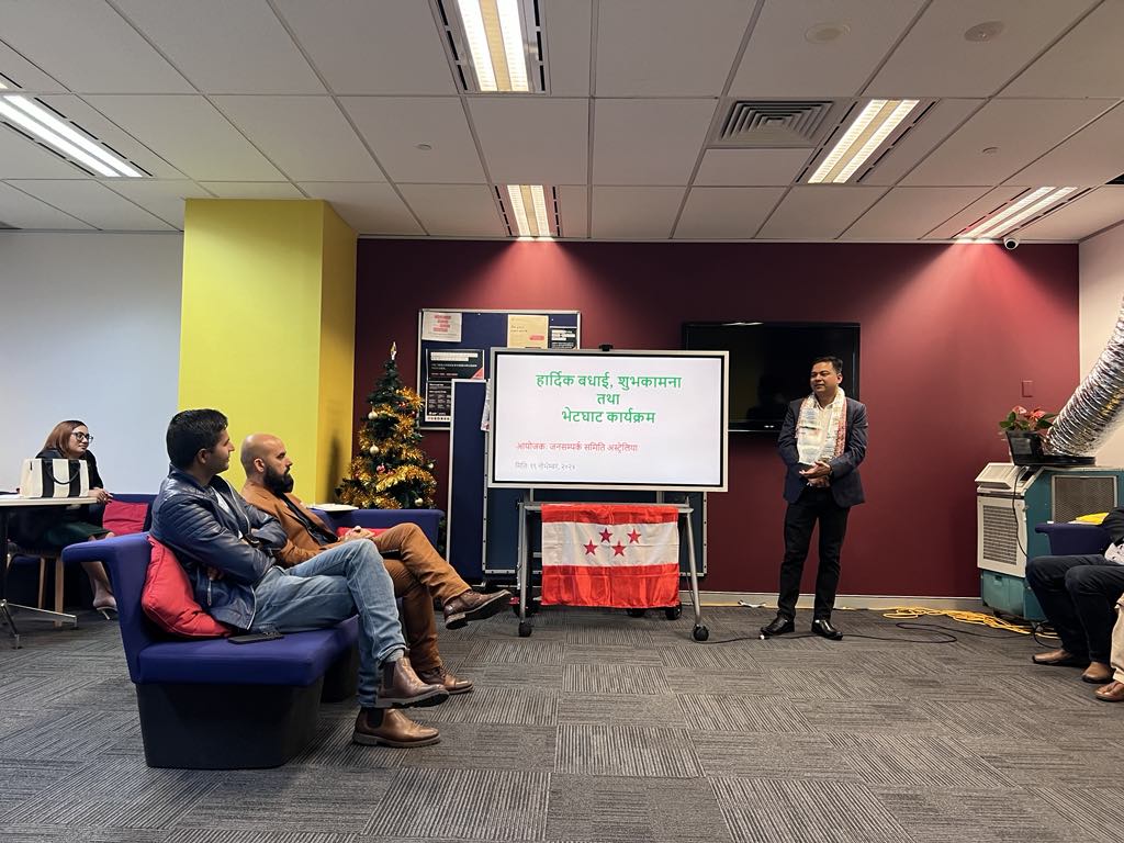 सिड्नी । नेपाली जनसम्पर्क समिति अष्ट्रेलियाले सिडनीमा बधाई एवं शुभकामना कार्यक्रम सम्पन्न गरेको छ । नेपाली कांग्रेसले भर्खरै गठन गरेको नेपाली जनसम्पर्क समिति समन्वय बिभागमाको केन्द्रिय सदस्यमा ओशियाना एवं अष्ट्रेलियालाई प्रतिनिधित्व गर्दै मनोनित भएका निवर्तमान सभापति तथा महासमिति सदस्य कृष्ण गिरीलाई बधाई तथा शुभकामना व्यक्त गर्न उक्त कार्यक्रम आयोजना गरिएको हो ।