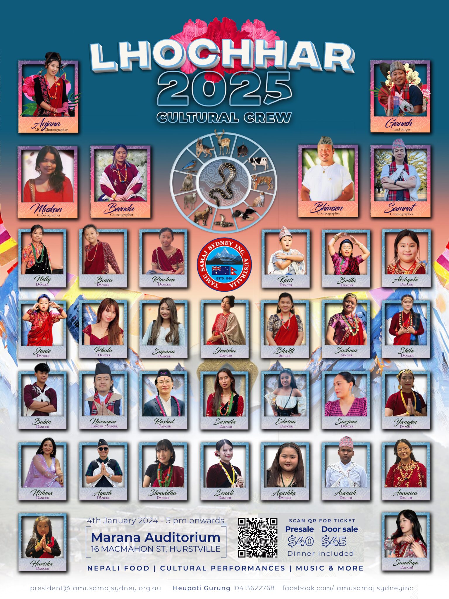 सिड्नी । तमु समाज सिड्नीले तमु ल्होछार पर्वको अवसरमा आयोजना गरेको कार्यक्रमको भव्य तैयारी अन्तिम चरणमा पुगेको छ ।तमु ल्होछारका अनुसार १२ वर्ग चक्र मध्ये गिद्ध वर्गलाई विदाई गर्दै यस वर्ष सर्प वर्गलाई स्वागत गरिदै छ । समाजले सांस्कृतिक पर्व तमु ल्होछारको अवसरमा यही जनवरी ४ तारिख माराना अडोटेरियममा बेलुकी ५ बजे देखि ‘ल्होछार कल्चरल क्र्यु’ कार्यक्रमको आयोजना गरेको छ ।
