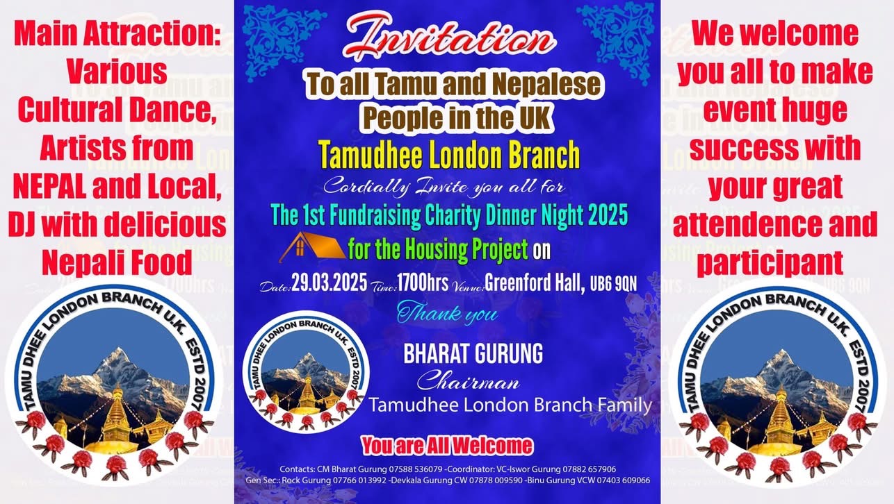 लण्डन। तमुधीं लण्डन इकाईले संस्था स्थापनाको १७ वर्ष पछि पहिलो पटक लण्डनमा आफ्नो संस्थाको भबन खरिद गर्ने परोपकारी उदेश्य सहित विशेष कार्यक्रम आयोजना गर्ने भएको छ।
