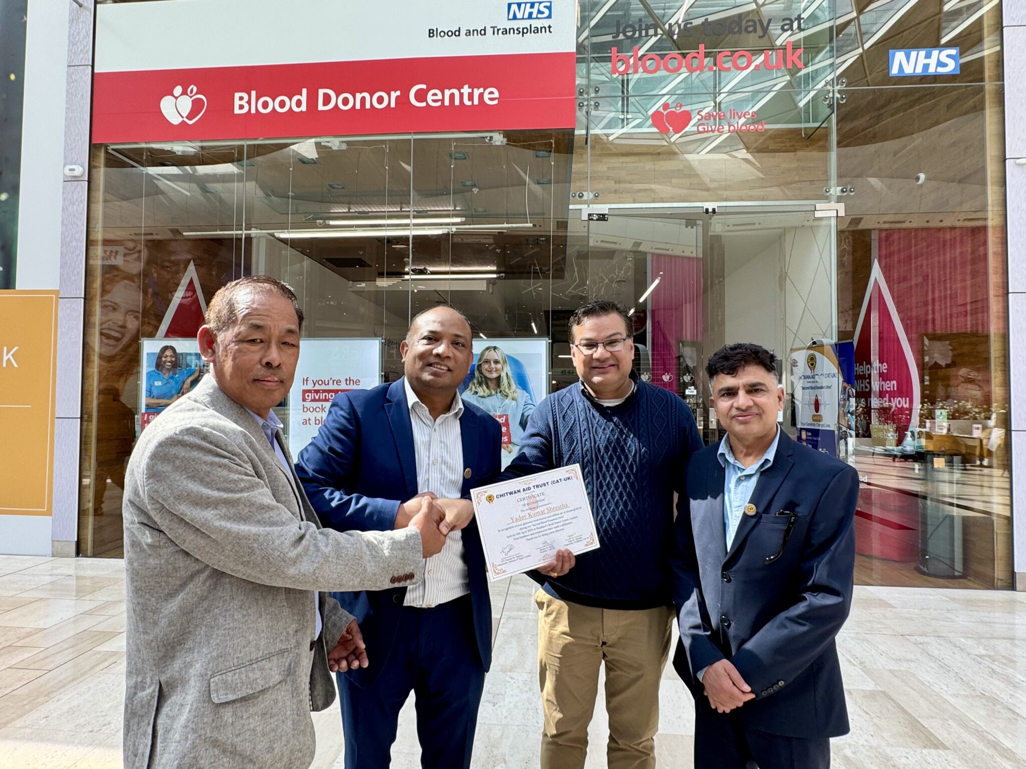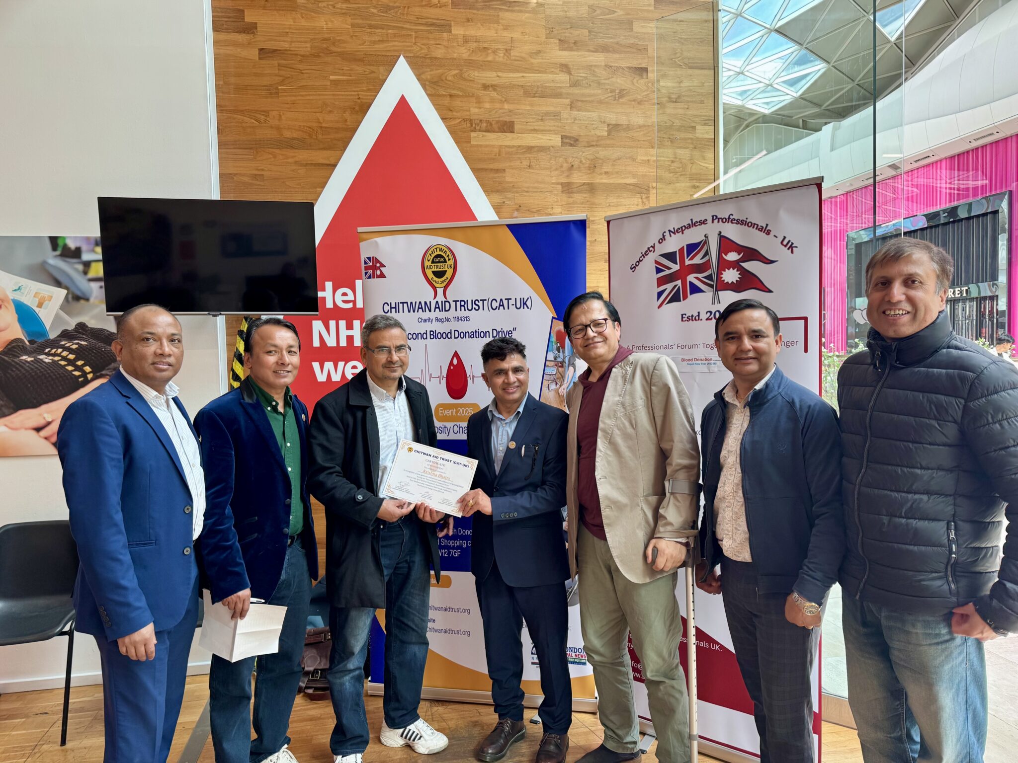 क्याट) यूकेले दोस्रो पटक लन्डन सेफहर्ड बुसस्थित वेष्टफिल्ड सपिङ सेन्टर परिसरमा आयोजना गरेको कार्यक्रममा ५२ जनाले रक्तदान गरेको क्याट यूके अध्यक्ष कृष्ण तिवारीले जानकारी दिए।