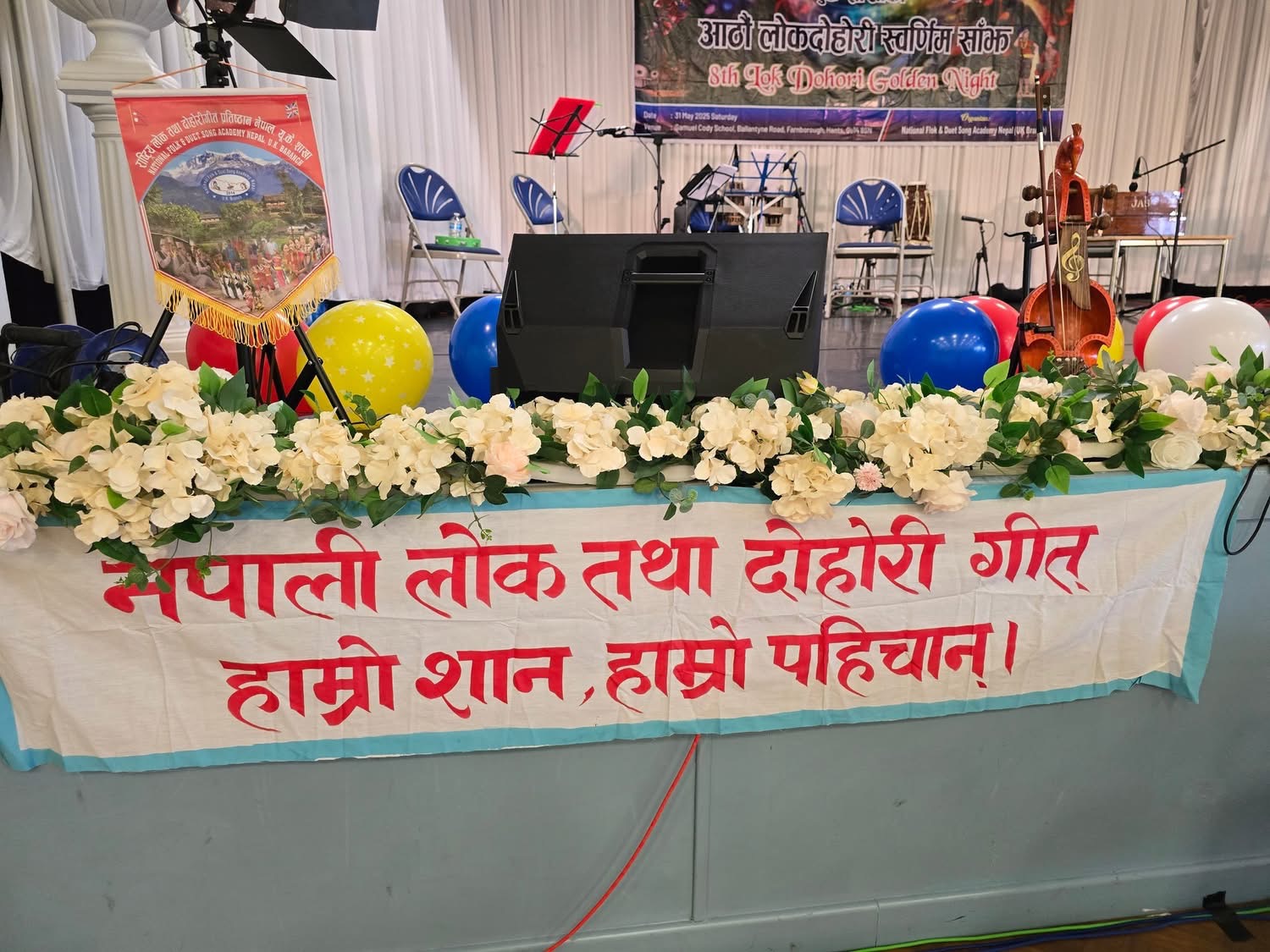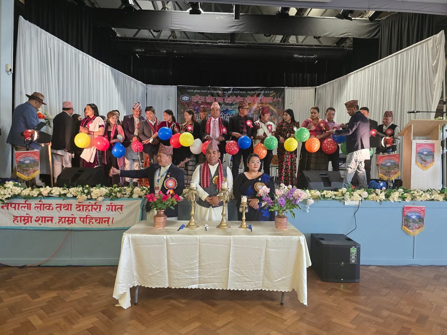 लन्डन।राष्ट्रिय लोक तथा दोहोरीगीत प्रतिष्ठान नेपाल यूके शाखाको आठौँ लोकदोहोरी स्वर्णिम साँझ सम्पन्न भएको छ । शनिबार, ३१ मेका दिन फार्नबोरोस्थित सामुएल कोडी स्कुलमा भव्य रूपमा कार्यक्रम भएको हो ।