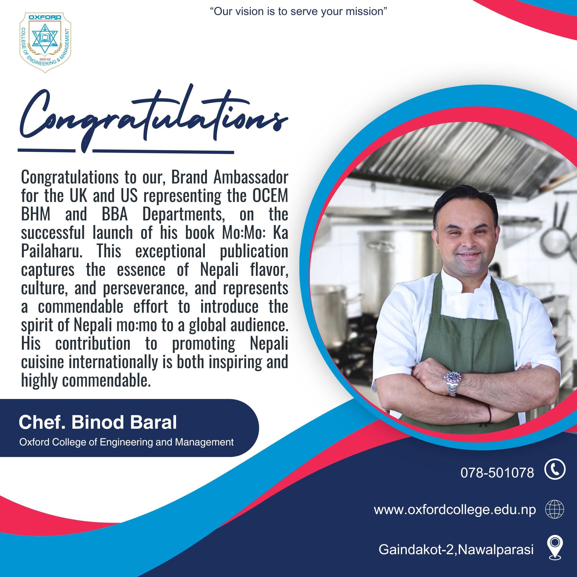 कार्यक्रममा लेखक बरालले आफू नेपाली परिकार अन्तर्राष्ट्रिय स्तरमा पुर्याउन सधैं क्रियाशील भइरहने बताए ।