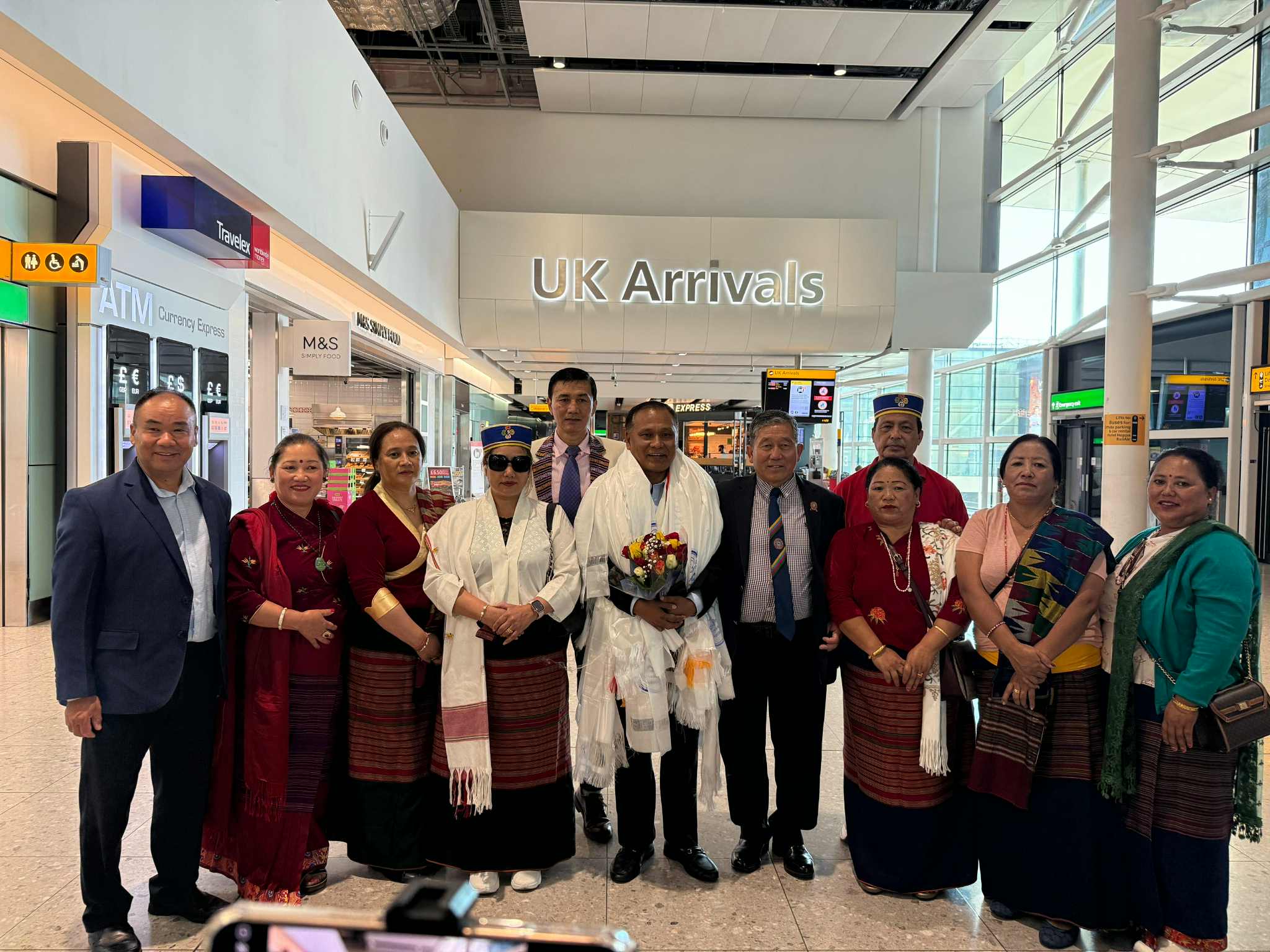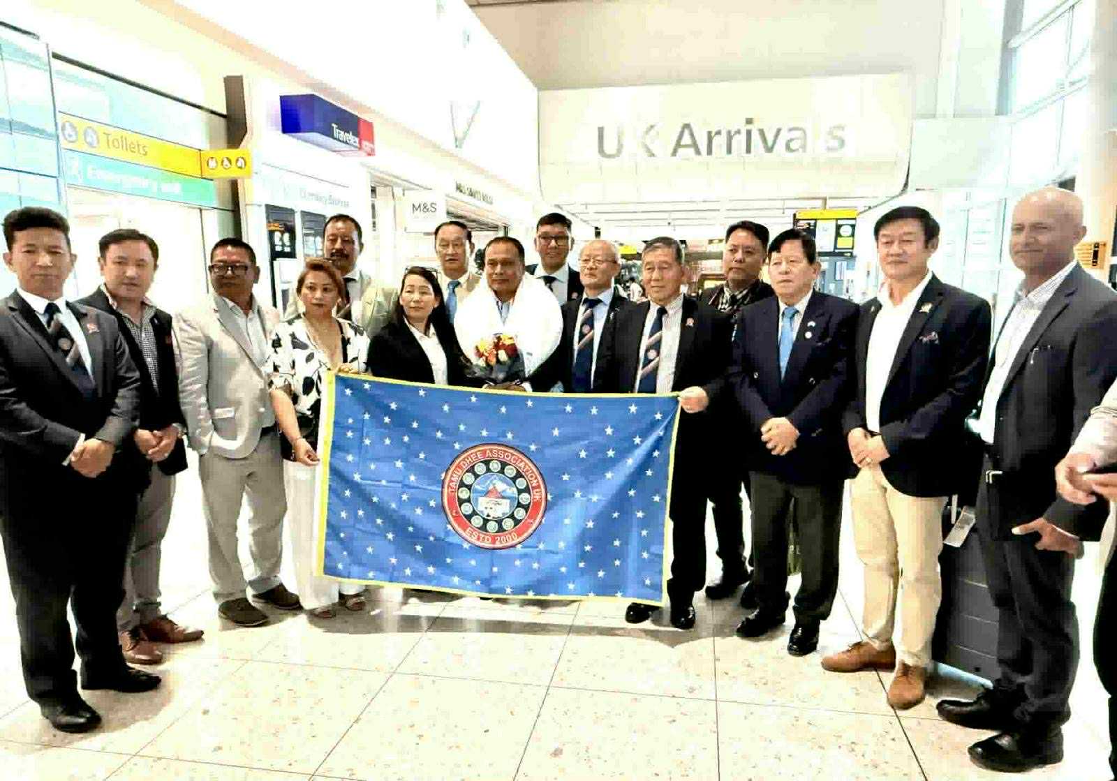 उनलाई हिथ्रो विमानस्थलमा एनआरएनए युके, तमु धिं युके लगायत विभिन्न संघसंस्थाका प्रतिनिधिहरुले स्वागत गरेका थिए।