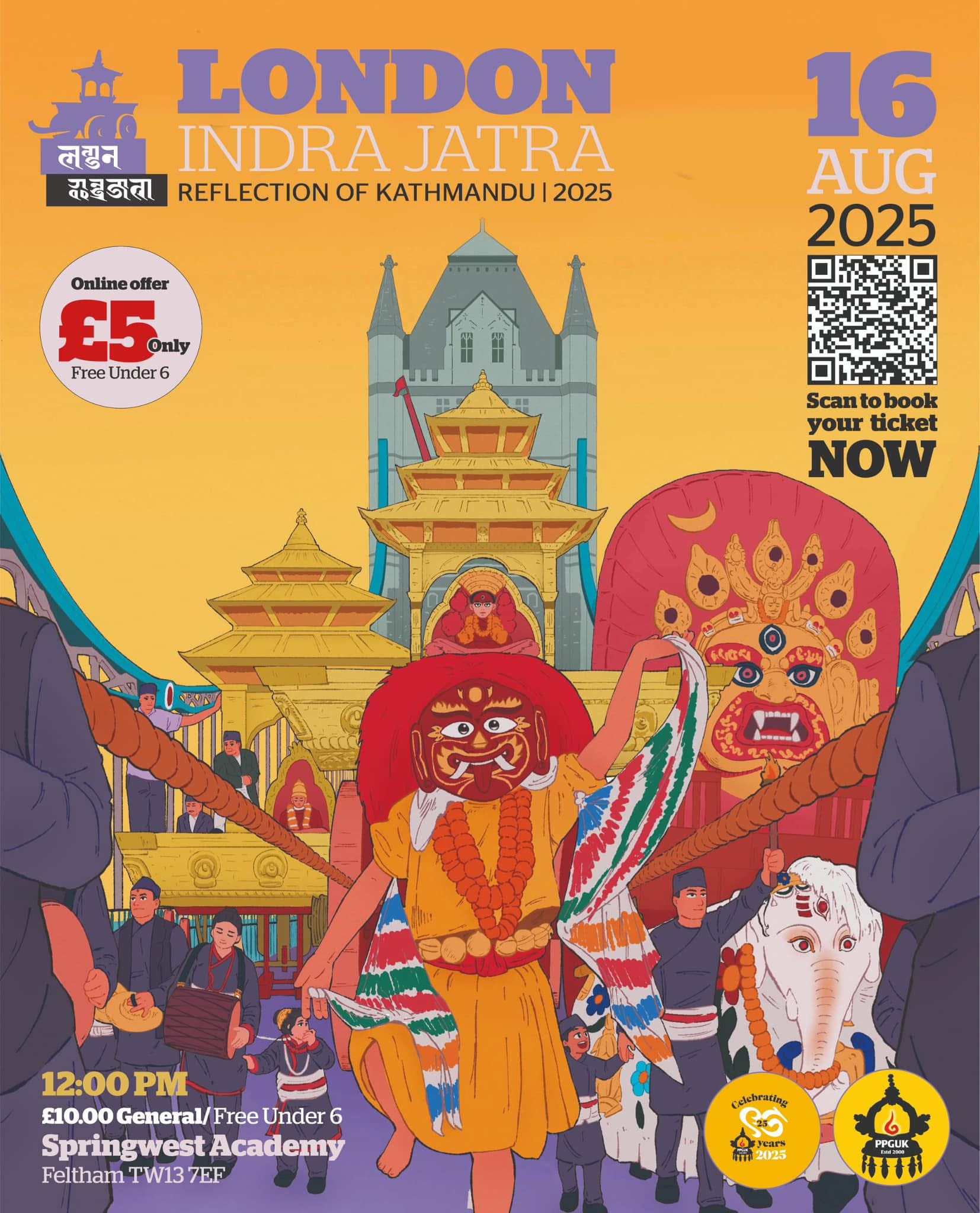 लन्डन।लन्डनमा इन्द्र जात्राको व्यापक तयारी गरिएको छ ।पासा पुच गुथि यूकेको आयोजनामा भोलि १६ अगष्ट शनिबार मध्यानह १२ देखि सांझ ७ बजेसम्म इन्द्र जात्रा गर्न लागिएको हो ।नेपालको संस्कृतिबाट सिकेर लन्डनमा आफ्नै शैलीको फयूजनसहित जात्रा गरिने आयोजकले जनाएका छन् ।