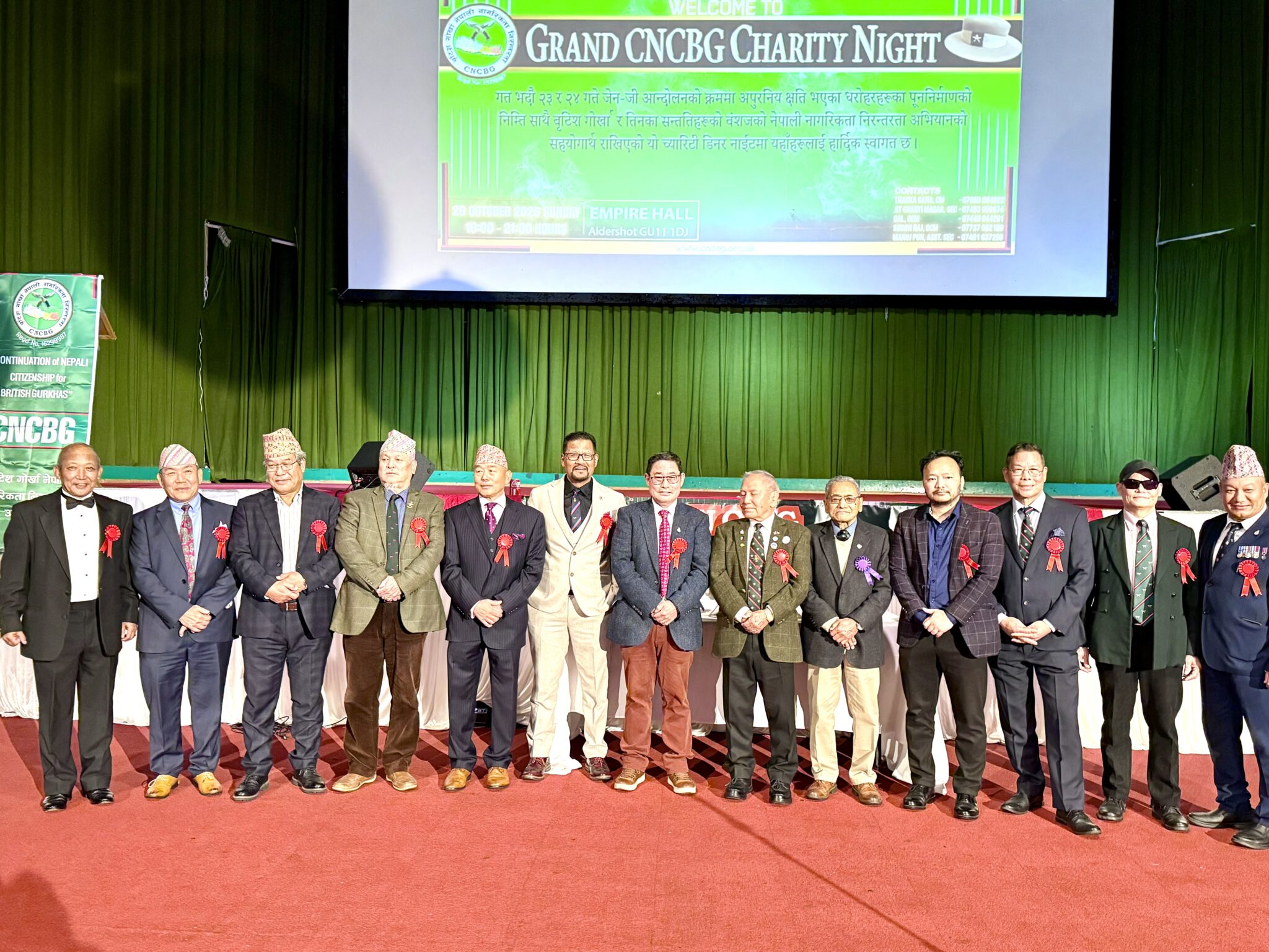 लन्डन । ब्रिटिश गोर्खा नेपाली नागरिकता निरन्तरता (CNCBG) ले आइतबार अल्डरसटस्थित एम्पायर हलमा आयोजना गरेको “ग्राण्ड च्यारिटी डिनर नाइट” भव्य रूपमा सम्पन्न भएको छ।