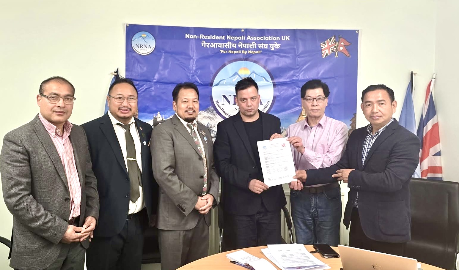 उनलाई विदाइ गर्न कार्यवाहक राजदूत विपिन दुवाडी र दूतावासका सैनिक सहचारी सहायक रथी अनुप शाह हिथ्रो विमानस्थल पुगेका थिए।