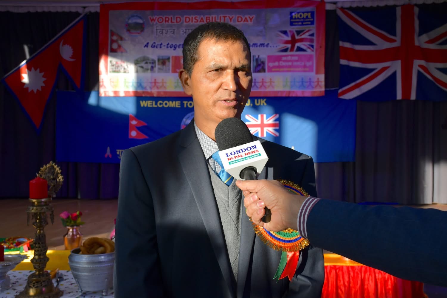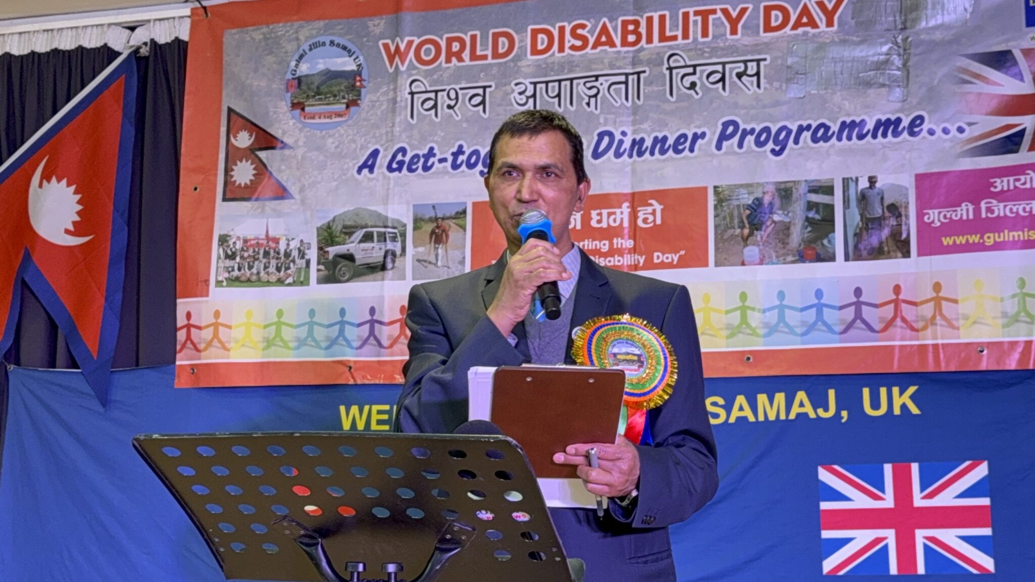 कार्यक्रममा प्रमुख अतिथि बेलायतका लागि नेपाली कार्यवाहक राजदूत विपिन दुवाडीले गुल्मी जिल्ला समाज युकेले विश्व अपाँग दिवसको अवसरमा वर्षेनी गर्दै आएको च्यारिटी कार्यक्रमबाट आफू प्रभावित भएको बताए।कार्यवाहक राजदूत दुवाडीले समाजले वर्षौं देखि फरक छेमता भएका व्यक्ति हरूको हितका लागि गर्दै आएको मानवीय सहयोगको प्रशंसा गरे ।