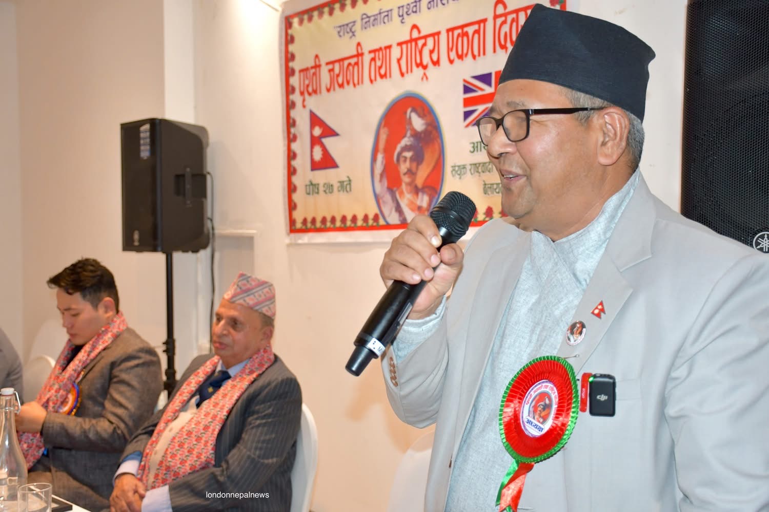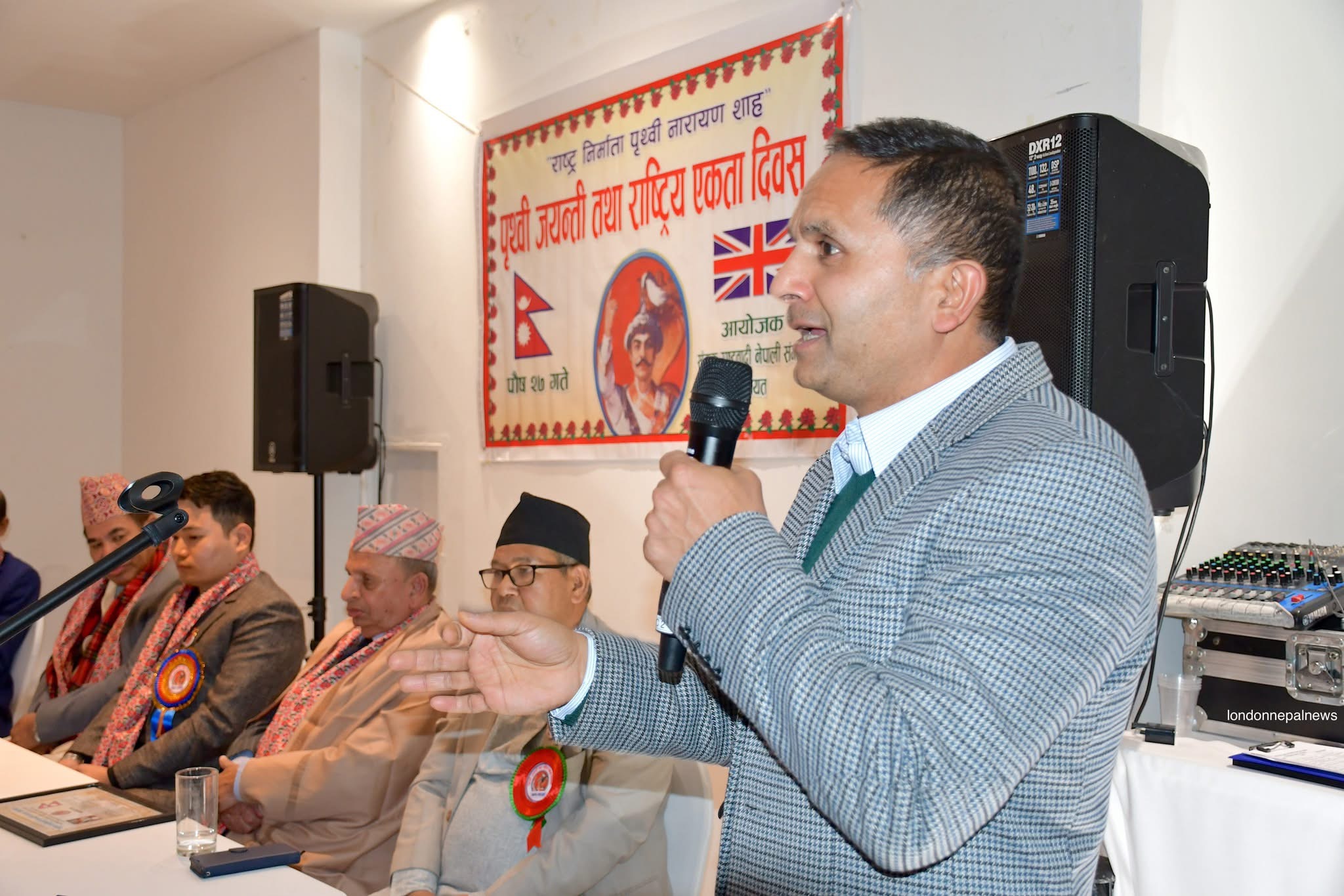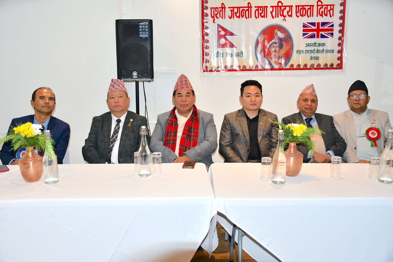 कार्यक्रमलाई सम्बोधन गर्दै विशेष अतिथी डा. राघवप्रसाद धिताल (ओबीइ) हन्स्लो बरोका पूर्व मेयर काउन्सिलर,विष्णु गुरुङ,वुद्धिजिवी विकलचन्द्र आचार्य,एनआरएनए यूकेका प्रमुख संरक्षक डेभिड गुरुङ,नेपाल आर्मीका पूर्व मेजर कुमार बस्नेत ,समाजसेवी विमल आचार्य,प्रेम गौतम, हेमन्त पौडेल, साहित्यकार हरिसिंह थापा,संगठनका महासचिव सुनिलजंग शाह लगायत वक्ताहरुले श्री ५ बडामहाराज पृथ्वीनारायण शाहको योगदानको चर्चा गर्दै नेपाल एकीकरणमा उहाँले पुर्याउनु भएको योगदानको चर्चा गरेका थिए ।