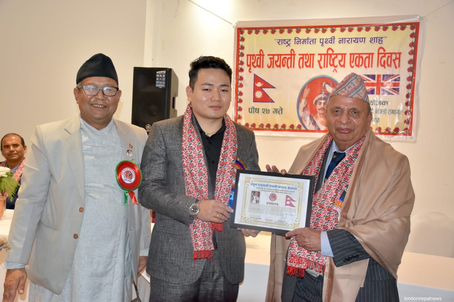 संयुक्त राष्ट्रवादी नेपाली संगठन बेलायतका अध्यक्ष भरत रोका क्षेत्रीको अध्यक्षतामा सम्पन्न कार्यक्रमका प्रमुख अतिथि लन्डनस्थित नेपाली दूतावासका द्वितिय सचिव संजोग राई रहेका थिए।