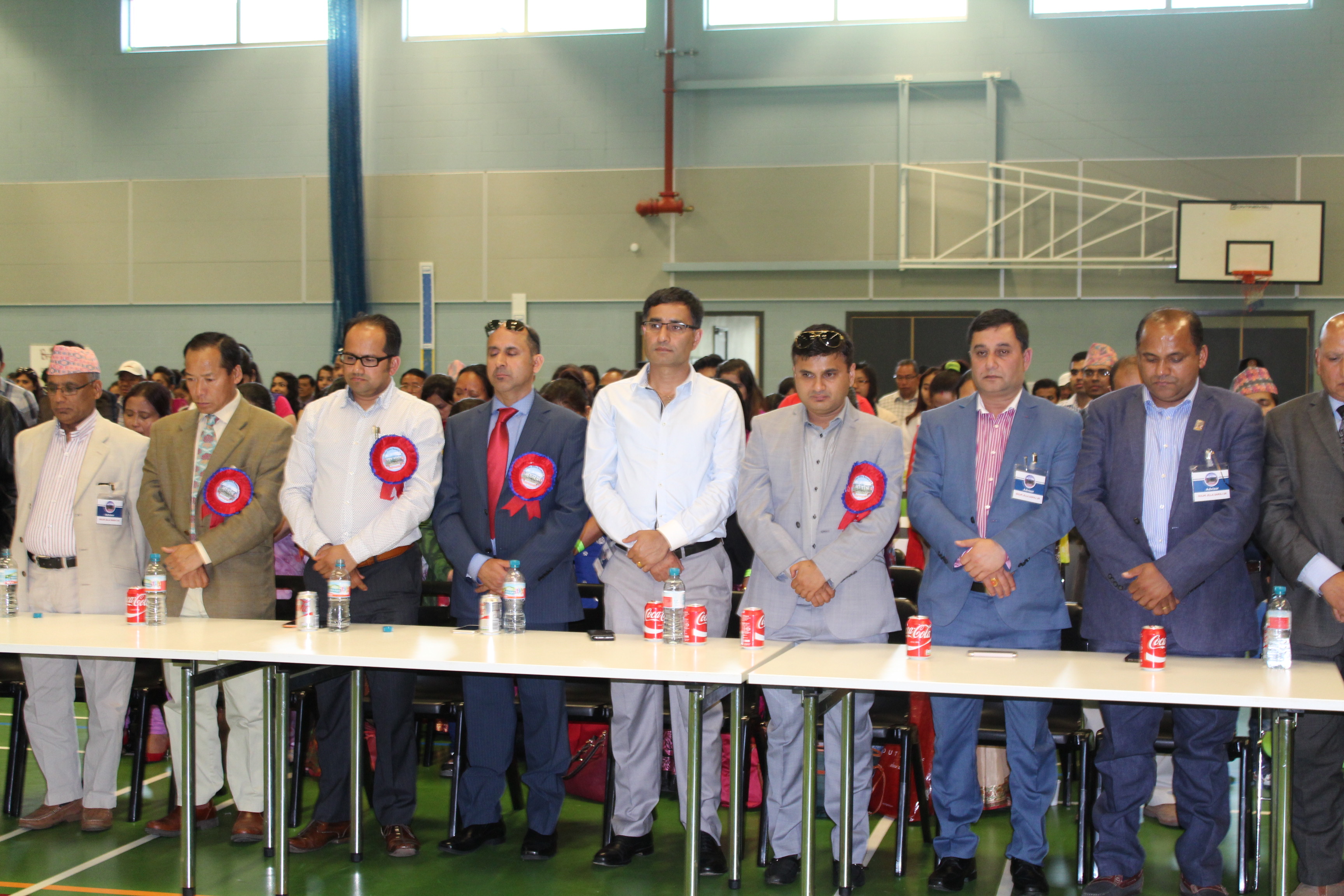भूकम्पमा ज्यान गुमाउनेको स्मृतिमा मौनधारण गरिएको कार्यक्रममा नेपाल तथा बेलायत दुवै देशका राष्ट्रिय गान समेत बजाइएको थियो । कार्यक्रमका अतिथी, नेपालबाट आएका कलाकार तथा समाजको आजिवन सदस्यता लिनेहरुको सम्मानमा नौमति बाजा बजाउंदै खादा ओढाएर सम्मान गरियो ।