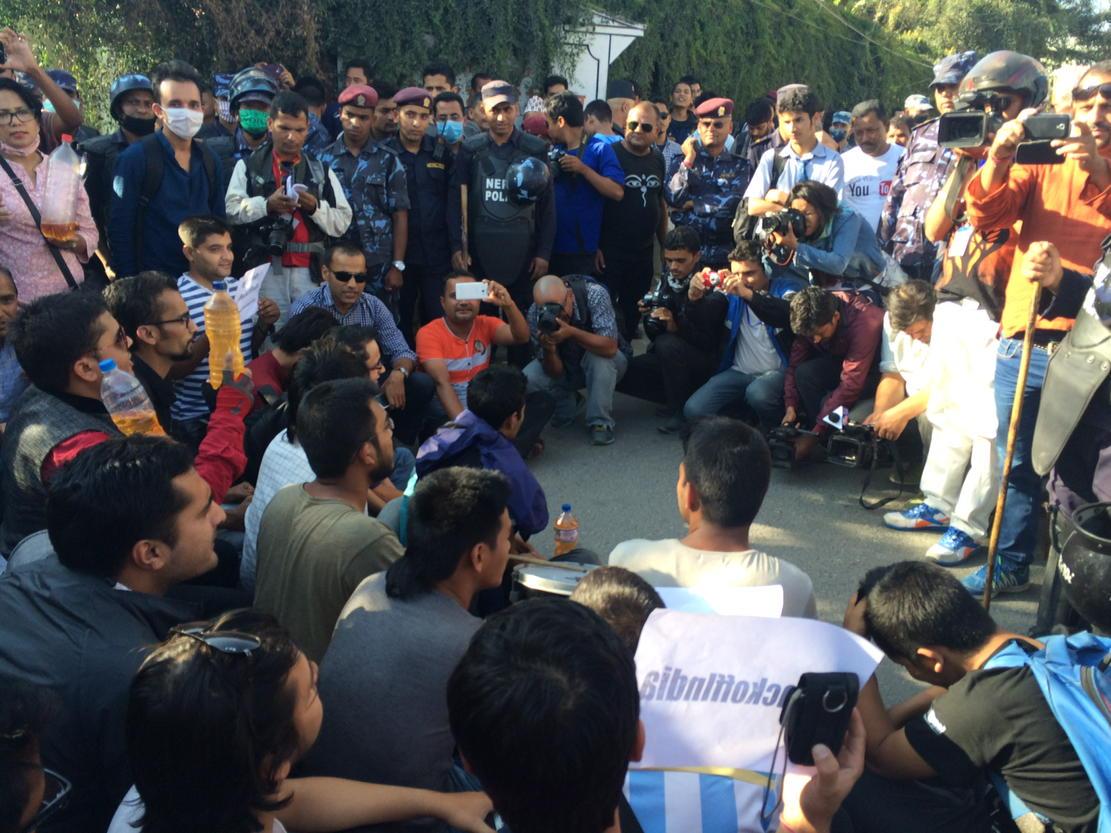 त्यसपछि केही साथीले हामी पनि जान्छौं भने। टाइमलाइनमै हामीले ठिक तीन बजे भारतीय दूतावाससामु भेला हुने सल्लाह गर्यौं। प्लेकार्ड र आफूले सक्नेजति पेट्रोलसहित मान्छे थपिँदै गए। जम्मा हुने भनेको समयमा त २ सयजति साथी आइसकेका थिए। दूतावासलाई दिने पेट्रोल पनि २० लिटर पुगेछ।