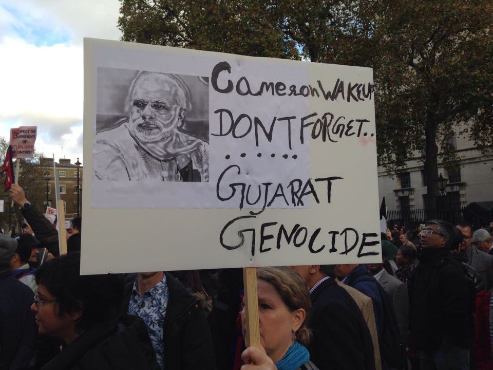 सन् २००२ मा गुजरातको मुख्य मन्त्री हुँदा मोदीलाई मुस्लिम विरोधी दंगा रोक्न नसकेको आरोपबीच बेलायतले मोदी प्रशासनले दशक अघिको दंगालाई समर्थन गरेको निष्कर्ष निकालेको थियो । उक्त दंगामा करिब एकहजार मुश्लिम मारिएका थिए ।