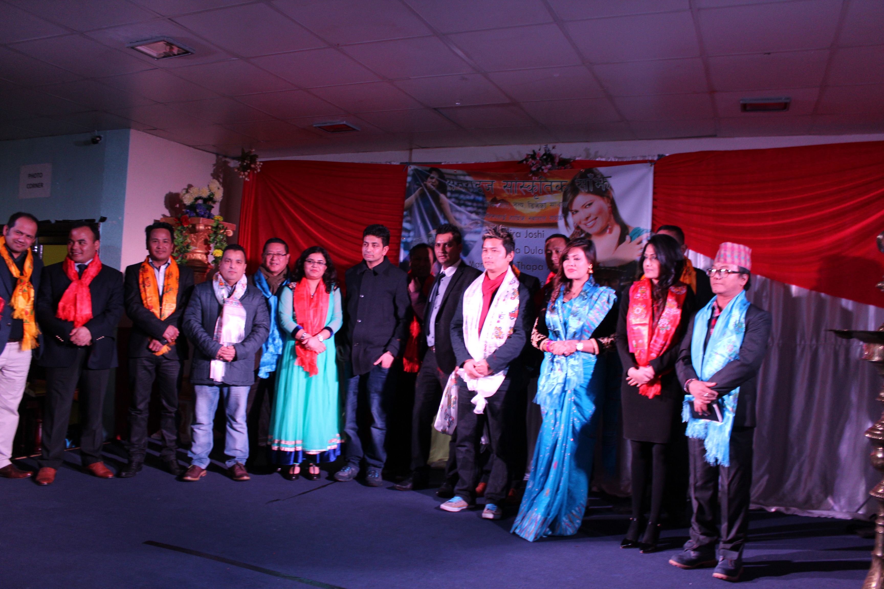 वीलवीच स्थित लोटस क्लबमा सोमबार साँझ भयको कार्यक्रममा जोशी र दुलालसंगै आएका नृत्य निर्देशक गोवीन्द राई, नायक तथा लोकदोहोरी गायक मधुसुदन थापा लगायत स्थानीय कलाकारहरुको विशेष प्रस्तुती रहेको थियो । हेम विष्ट डिजे रहेको उक्त कार्यक्रमको संचालन रमा लामिछाने गरेकी हुन् भने कार्यक्रमका प्रमुख अतिथि बेलायतका लागि नेपाली कार्यवहाक राजदूत तेजबहादुर क्षेत्री थिए ।