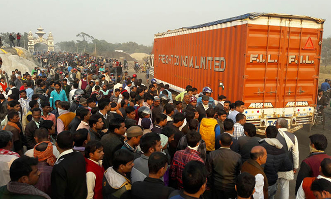 वीरगन्ज रक्सौल नाकामा अवरोध गर्न शनिबार दिउँसो मितेरी पुलमा पुगेका मधेसी दलका नेता र कार्यकर्तालाई भारतीय व्यापारी र स्थानीय बासिन्दाले लखेटेका हुन् । संयुक्त लोकतान्त्रिक मधेसी मोर्चाले शुक्रबार दिउँसोदेखि खुलेको नाका शनिबार फेरि अवरुद्ध पार्ने निर्णय गरेको थियो । तर भारतीय व्यापारीले लखेटेपछि अबरोध भएन ।