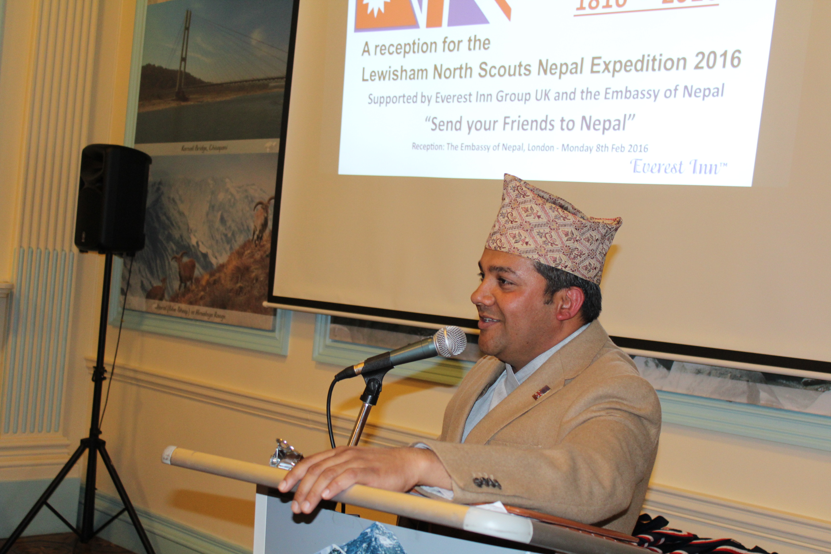 ‘ए रिसेेप्सन फर द लुइसहाम नर्थ स्काउट्स नेपाल इक्स्पीडिसन २०१६’ नाम दिइएको उक्त कार्यक्रममा आगामी महिना नेपाल भ्रमण गर्ने ४३ जना सदस्यहरुलाई सम्मान गरिएको थियो । यसअघि पनि एभरेष्ट इन ग्रुपले नेपालको पर्यटन क्षेत्रको विकासमा विभिन्न तवरबाट सहयोग गर्दै आइरहेको छ ।