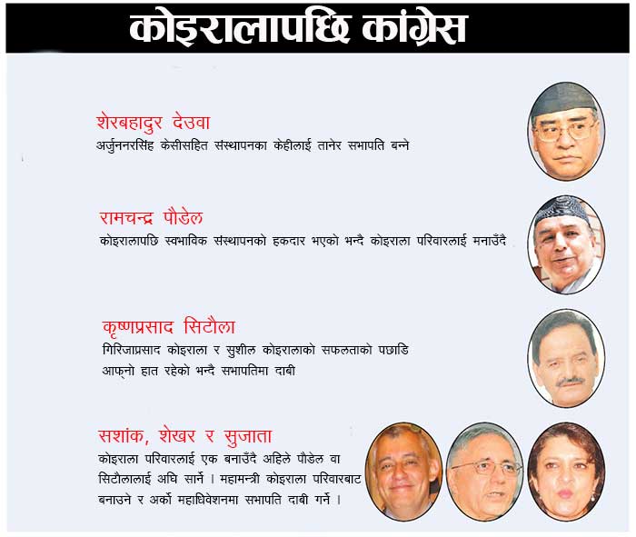 सुशीलको किरिया भइरहेको महाराजगन्जस्थित डा. शशांक कोइरालानिवासमा शनिबार बसेको बैठकमा कसको नेतृत्वमा अगाडि बढ्ने भन्नेबारे छलफल भएको छ ।