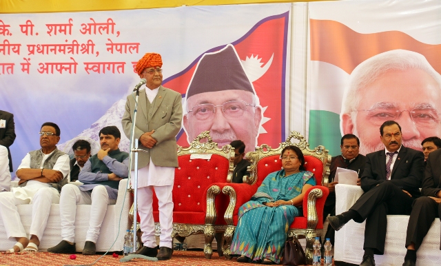 Locals lining up on both sides of the road welcomed PM Oli waving the national flags of both countries. Portraits of PM Oli and Indian Prime Minister Narendra Modi and welcome banners were put up on the poles and walls alongside the road. Modi was two-time Chief Minister of Gujarat state.