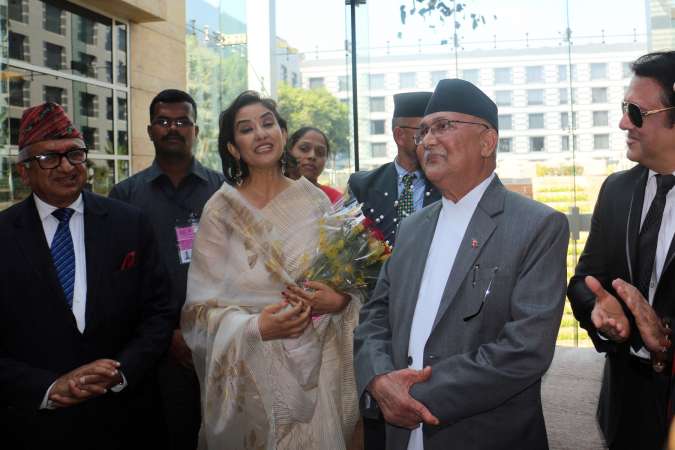 मुम्बईस्थित होटल ग्रान्ड हायातमा बलिउड फिल्म उद्योगका कलाकारहरु मनिषा कोइराला, गोविन्दा, मुरलीधर, उदितनारायण झा, तब्बु, बप्पी लहरी, बपीन अलीलगायतले प्रधानमन्त्री ओलीसँग भेट गरेका हुन् ।