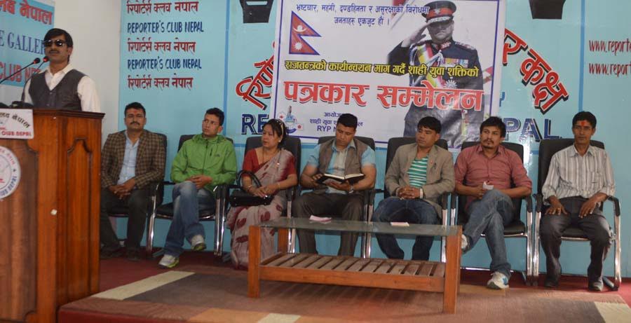 बिहीबार रिपोर्टर्स क्लब नेपालमा पत्रकार सम्मेलन गर्दै शाही युवा शक्ति (आरवाईपी)ले राजा ज्ञानेन्द्रसँग प्रमुख राजनीतिक दलहरुले तत्कालिन अवस्थामा गरेको सम्झौताहरु कार्यान्वयन नगरेको बरु विदेशी डलरमा राष्ट्रियता बेचेको भन्दै शीर्ष नेताहरुलाई खबरदारी गर्न नेपाल बन्द लगायतका बृहत्त विरोधका कार्यक्रमहरु अघि सारेको बताएको हो ।