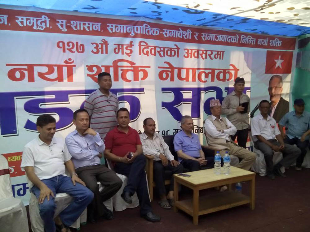 १२७ आँै मई दिवसको अवसर पारेर नयाँ शक्ति नेपालले इटहरीमा गरेको खुलासभालाई सम्बोधन गर्दै उहाँले उक्त कुरा बताउनुभएको हो । ‘अदालतले दोषी ठहर गरेका व्यक्तिलाई राजनैतिक संरक्षण दिनाले दण्डहिनता बढेको छ,’ उहाँले भन्नुभयो, ‘नयाँ शक्तिले फटाहा र अपराधीलाई संरक्षण दिँदैन ।’