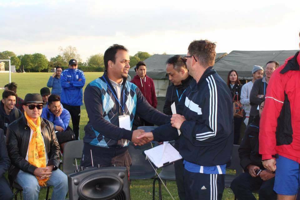 फुटबल विजेता टिम र खेलाडीहरुलाई साउथ इष्ट क्षेत्रीय तमुधिं अध्यक्ष श्री चन्द्र गुरुङ, एनआरएनए यूके पूर्व अध्यक्ष महेन्द्र कंडेल, व्यवसायी यादव भण्डारी, एनजे गुरुङ, भिम (महेन्द्र) गुरुङ, ग्रीनवीच मेयर नोर्मन आडम्स्, एनआरएनए आइसीसी सल्लाहकार त्रिलोक गुरुङ लगायतले पुरस्कार प्रदान गरेका थिए ।
