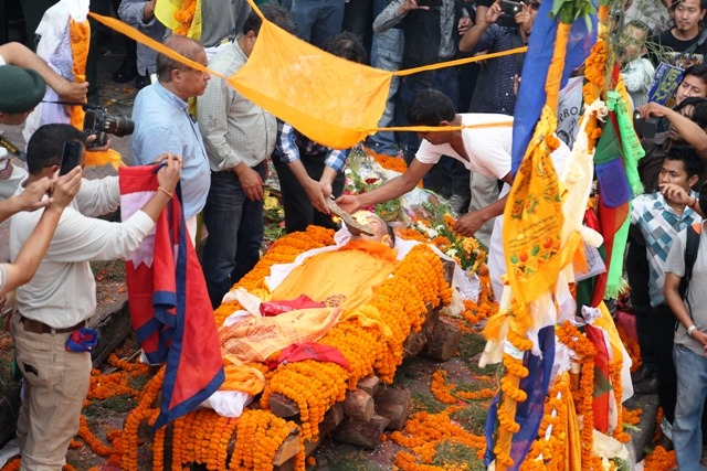 मंगलबार साँझ पशुपति आर्यघाटमा हिन्दू र बौद्ध विधिअनुसार अन्तिम संस्कार गरियो । उहाँको पार्थिव शरीरमा जेठा छोरा किशोरले दागबत्ती दिनुभयो । अन्तिम संस्कार गर्ने क्रममा बौद्ध लामाले बौद्ध संस्कारअनुसार मन्त्रोच्चारण गरेका थिए ।