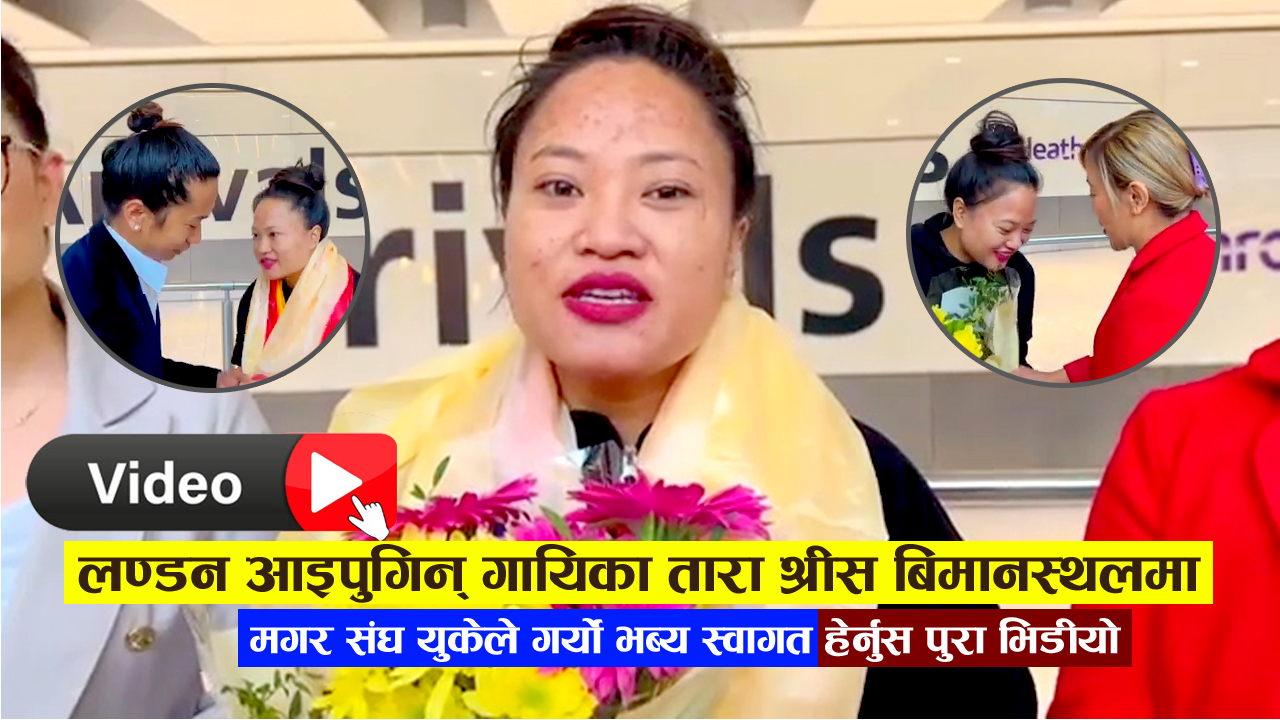 लण्डन आइपुगिन् गायिका तारा श्रीस बिमानस्थलमा मगर संघ युकेले गर्यो भब्य स्वागत( हेर्नुस पुरा भिडीयो )