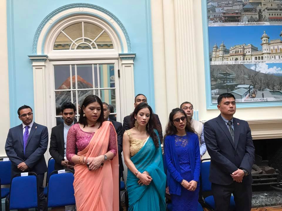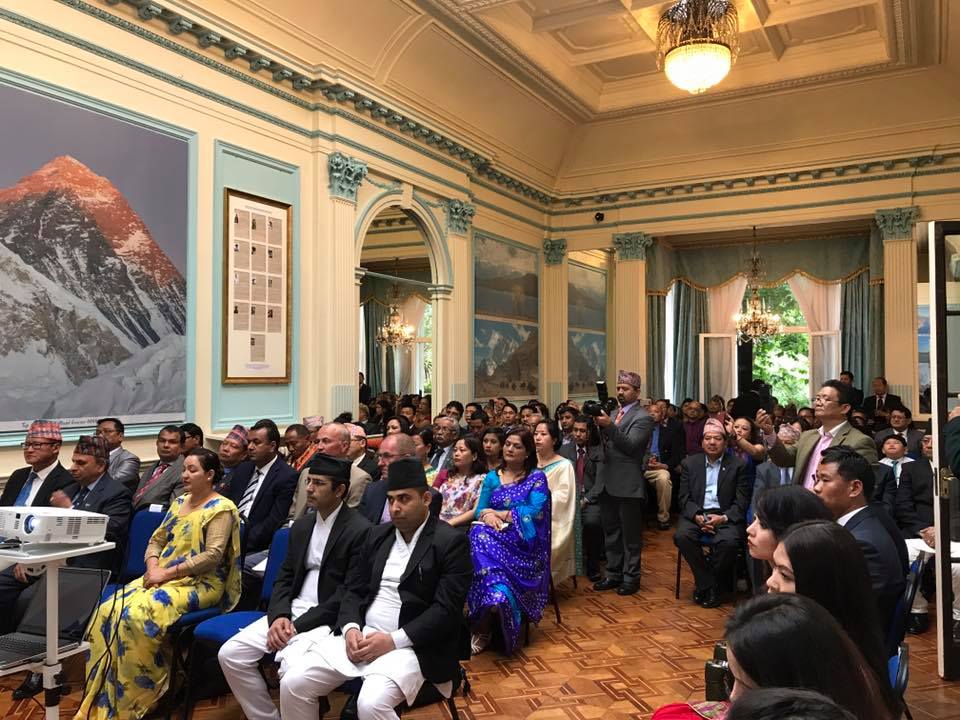 दूतावासका उपनियोग प्रमुख शरदराज आरणले सञ्चालन गरेको कार्यक्रमको अन्तिम खण्डमा नेपालबाट आएकी गायिका तथा नायिका विष्णु चेम्जोङ र चोक गुरुङले गायन प्रस्तुत गरेका थिए । बेलायतको रक्षा, परराष्ट्र मन्त्रालयका अधिकारीहरु, नेपाली संघ संस्थाका प्रतिनिधि, सञ्चाकर्मीलगायत ३ सयभन्दा बढीको उपस्थिति थियो ।