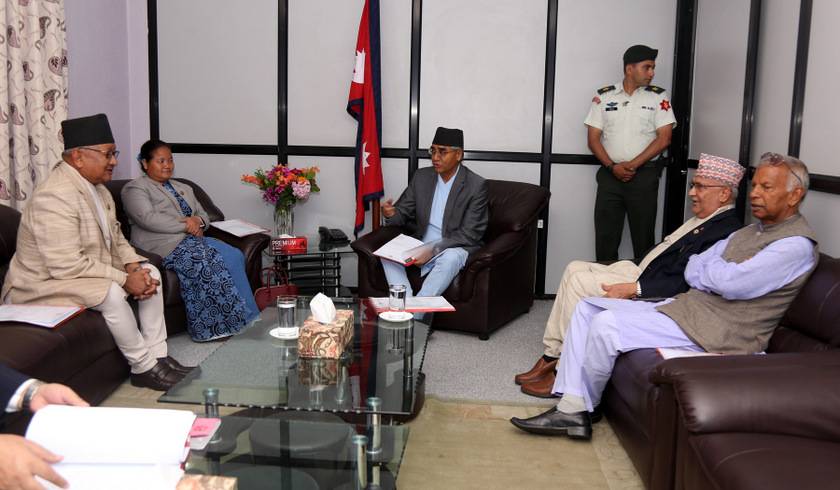 बैठकमा प्रधानमन्त्री शेरबहादुर देउवा, प्रमुख प्रतिपक्षी दलका नेता ओली, सभामुख ओनसरी घर्ती, उपसभामुख यादव, उपप्रधानमन्त्री एवम् कानुन न्याय तथा संसदीय मामिलामन्त्री गोपालमान श्रेष्ठ उपस्थित थिए ।