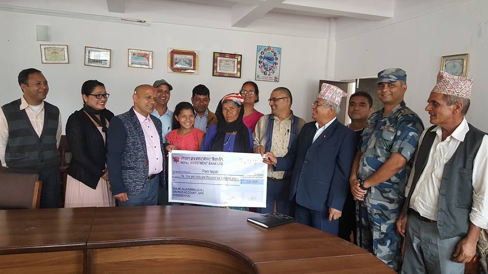 त्यसैगरी समाज्सेवी तथा ब्यवसायी निम बहादुर कुवर तथा कुल प्रसाद भण्डारी ले पीडित प्रेम नेपाली कि आमा को नाममा बैंक खाता खोली रकम जम्मा गरिदिने तथा आत्मनिर्भर बनाउन सानो पसल वा खुकुरा पालन को ब्यवस्थापन गरिदिने आश्वासन दिनुभएको थियो ।
