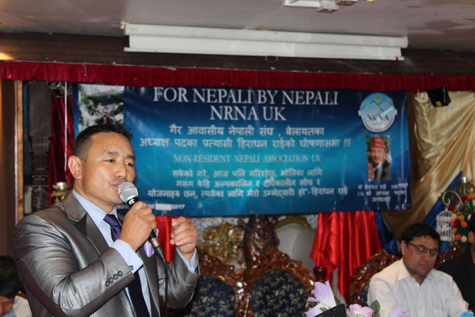 लन्डन । एनआरएनए युकेका उपाध्यक्ष हिराधन राइलेले आगामी नेतृत्वको दाबी गर्दै अध्यक्षको उम्मेदवारी घोषणा गरेका छन्।शुक्रबार सांझ भेटघाट रेष्टुरेन्टमा बेलायतस्तित प्रमुख नेपाली संघसंस्थाका प्रतिनिधि तथा सञ्चारकर्मीमाझ उनले उम्मेदवारी घोषणा गरेका हुन् ।