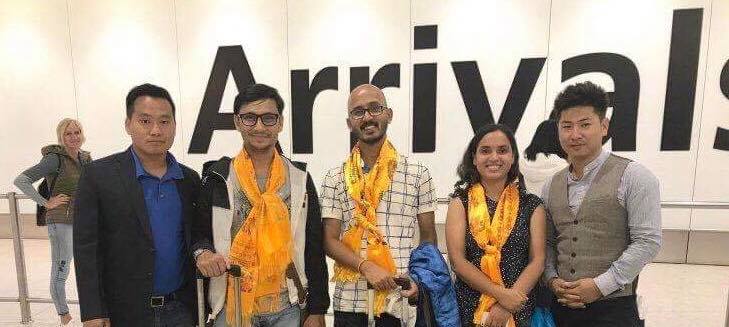 बिहिबार बिहान लण्डन उत्रिएका उनीहरुलाई ३२ बक्स समुहका प्रशान्त थापा लगायतको समुहले विमानस्थल पुगेर स्वागत गर्यो ।