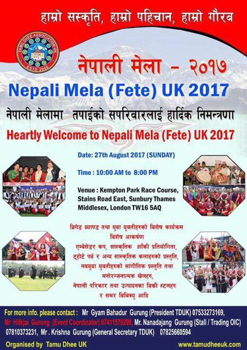 बेलायतवासी झण्डै दश हजार नेपाली आउने अपेक्षा गरिएको मेलामा सहभागी हुन गैर आवासीय नेपाली संघका अध्यक्ष शेष घले समेतको उपस्थिति रहने तमुधिं यूकेका अध्यक्ष ज्ञाम गुरुङले लण्डन नेपाल न्यूज डटकम संग को टेलीफोन कुराकानीमा बताउनु भयो ।