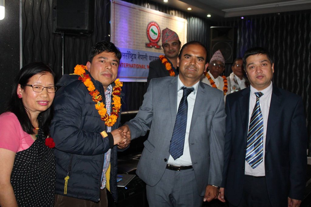 प्रमुख अतिथी राजदूत दुर्गाबहादुर सुवेदी,सहित प्रतिष्ठानका अध्यक्ष विकलचन्द्र आचार्य, साहित्यकार गोविन्दराज विनोदी र वरिष्ठ सञ्चारकर्मी एवं साहित्यकार खगेन्द्र नेपालीले न्यौपानेलाई ६० हजार रुपैयां