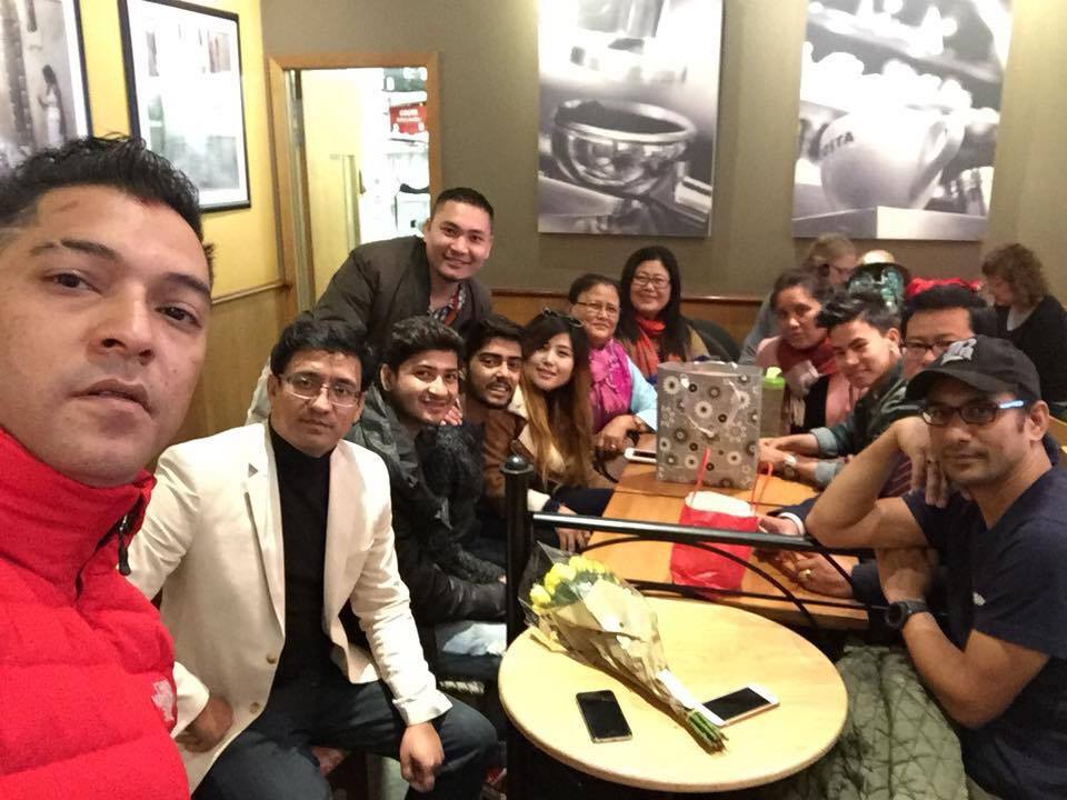 स्वागतका लागि आयोजक मनकामना रेमिटका प्रबन्ध निर्देशक राजाराम गिरी, तमुधीं यूकेका अध्यक्ष ज्ञाम गुरुङ,यती एसोसिएसनका पूर्वअध्यक्ष उमेश मोक्तान, सपन इन्टरटेन्मेन्टका निर्देशक सपन राई, पत्रकारलगायत हिथ्रो विमानस्थलको टर्मिनल ४ मा पुगेका थिए ।